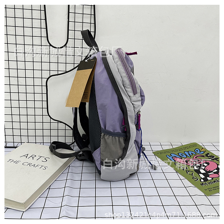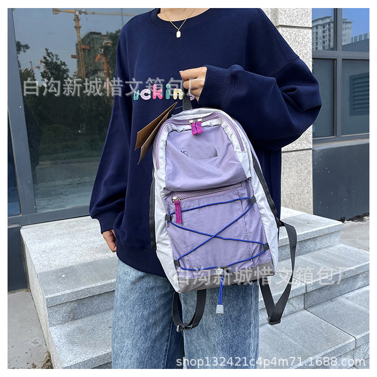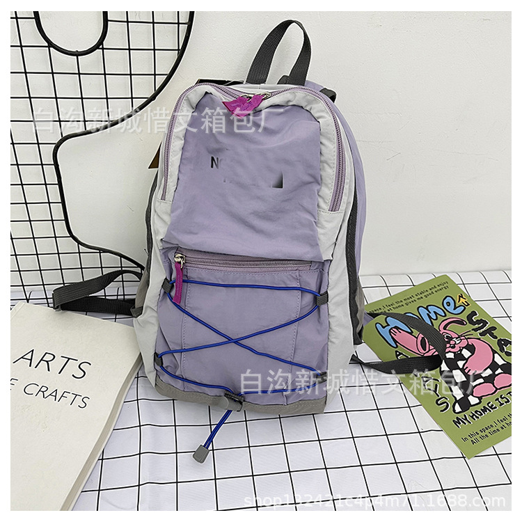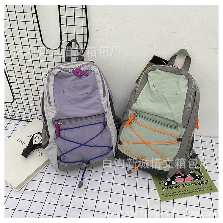 트렌디 한 브랜드 컬러 콘트라스트 백팩 경량 대용량 여행 가방 유행 Drawstring 작은 배낭 높은 컬러 가치 중학생 스쿨백스토어 가기