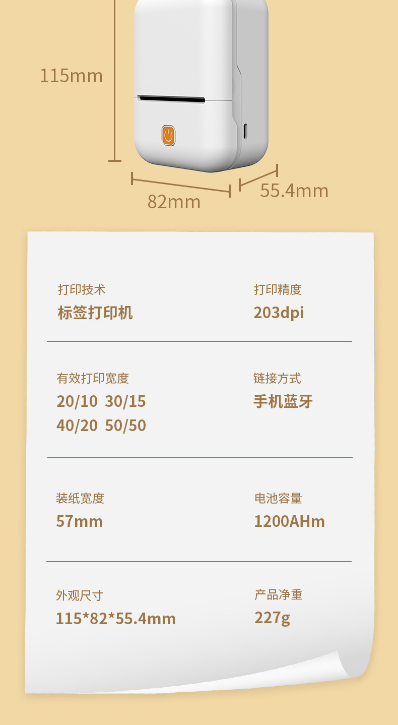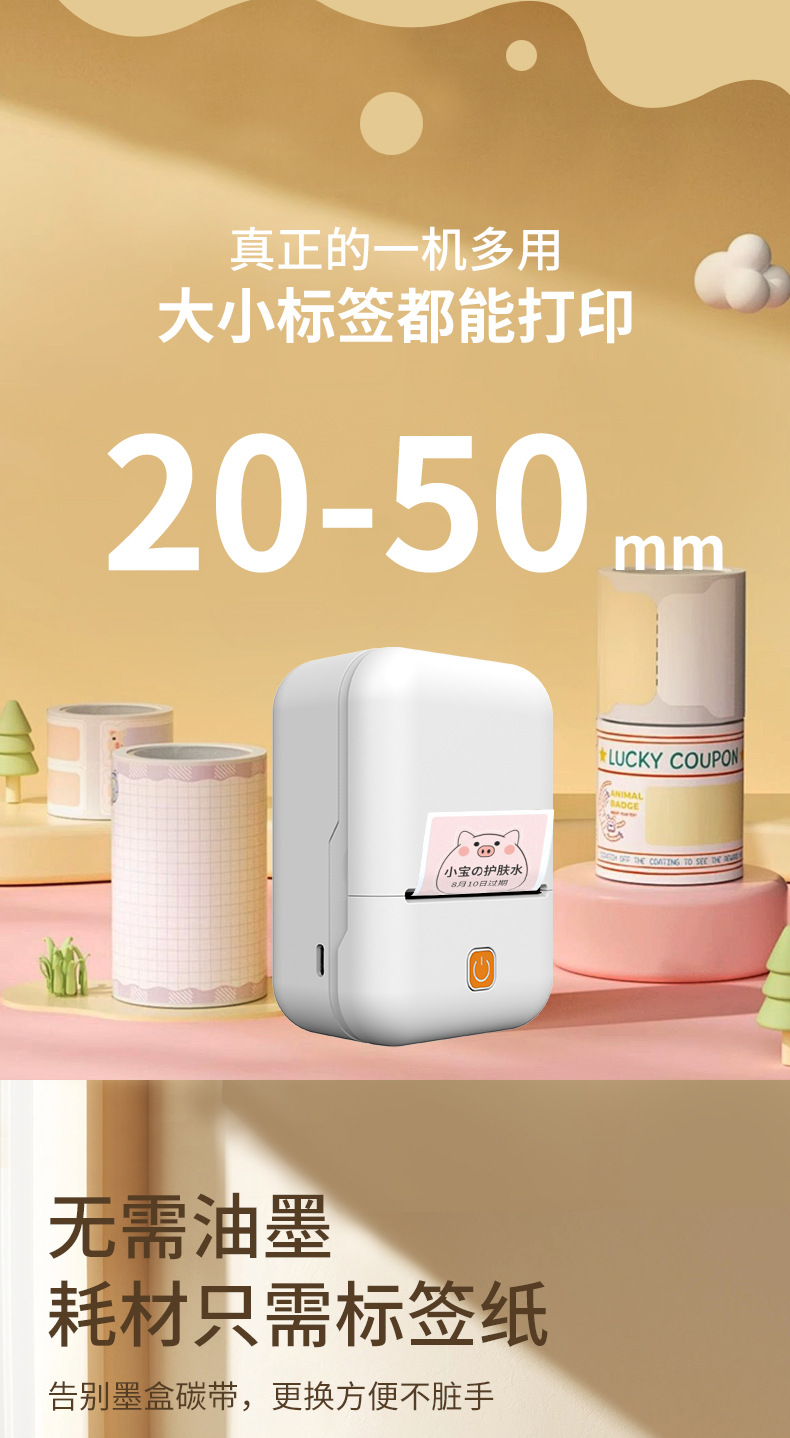 • Y2 흰색 라벨 프린터(인쇄 용지 롤 + 데이터 케이블 포함)