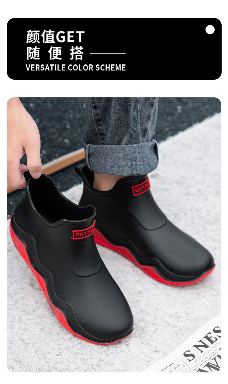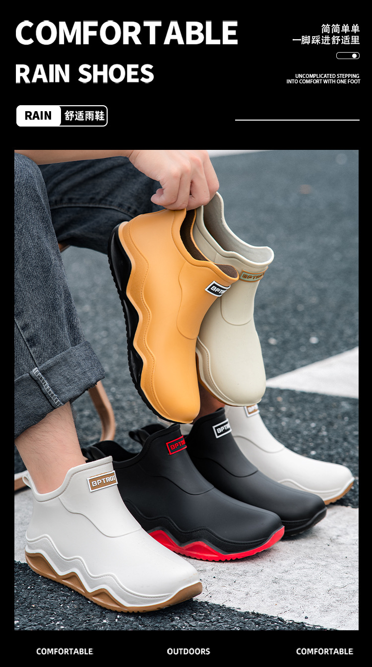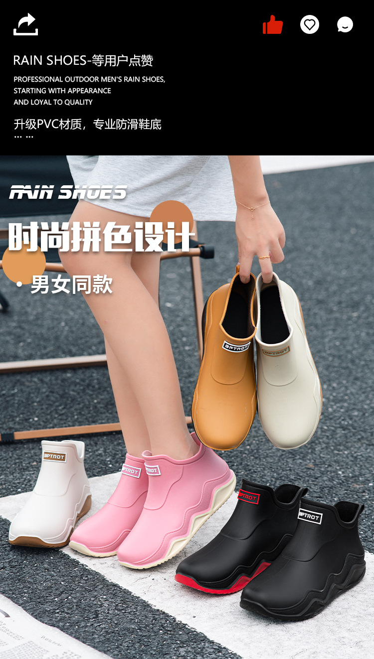 방수 신발 패션 저층 장화 한국 남성과 여성의 일 미끄럼 짧은 장화 학생 성인 외부 착용 워터 부츠