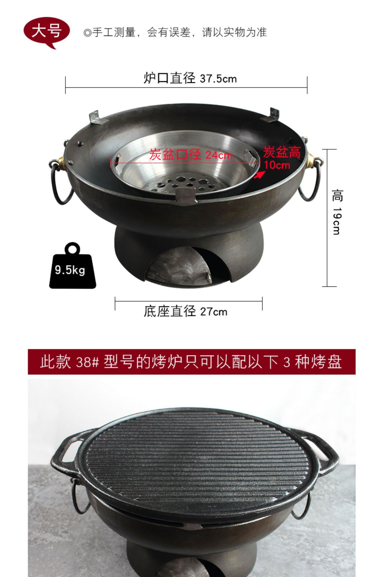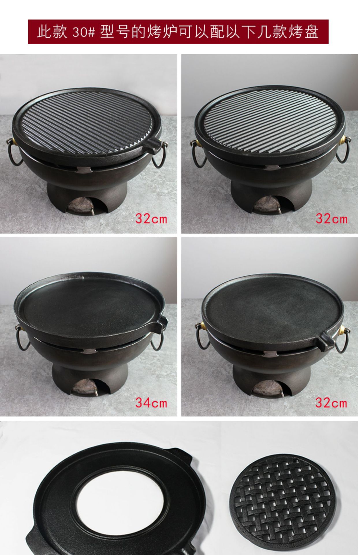 • 평면 베이킹 팬 32개 + 기름 배출구가 있는 소형 바베큐 스토브, 손잡이 없음