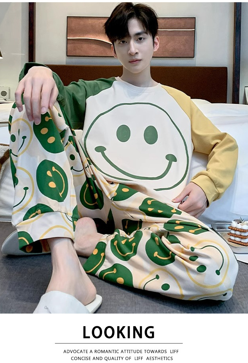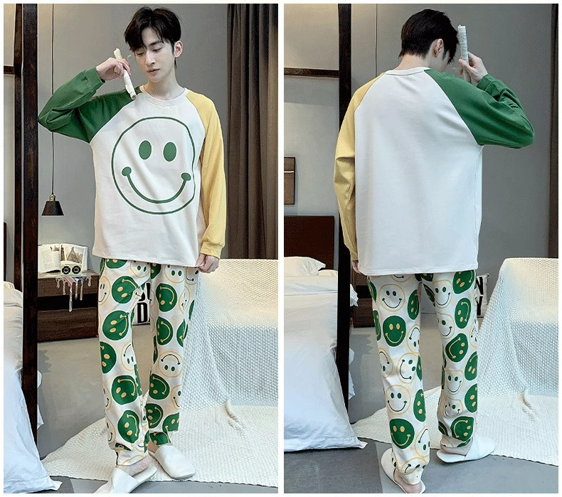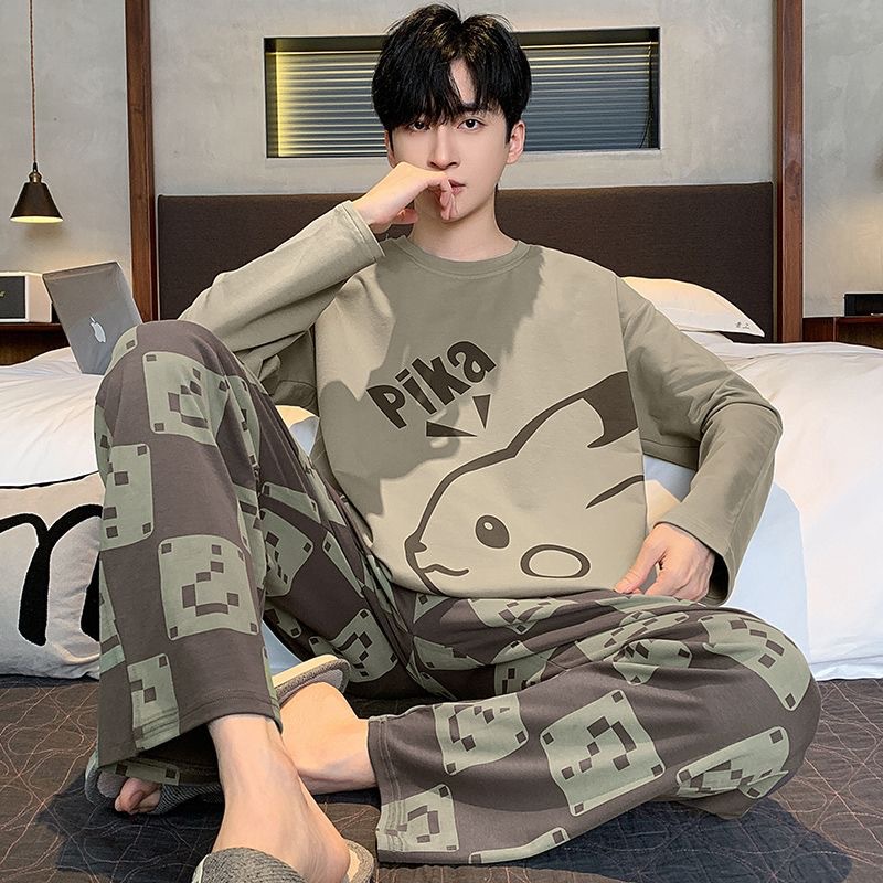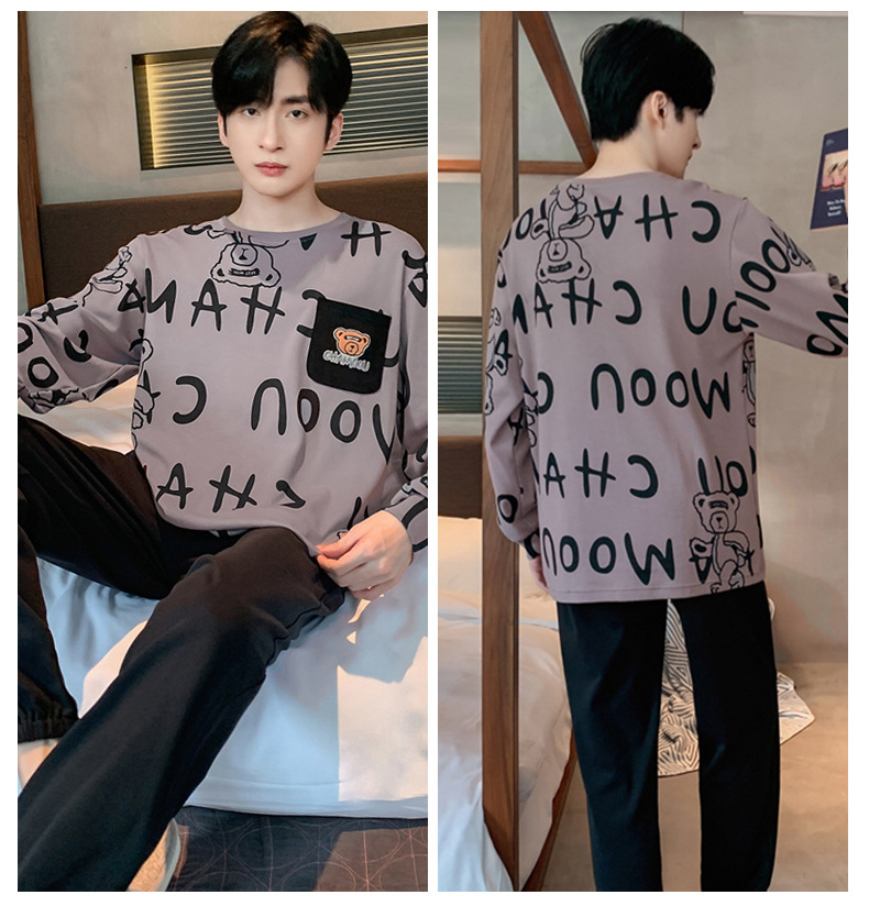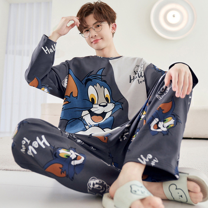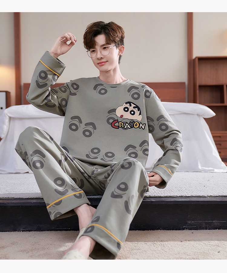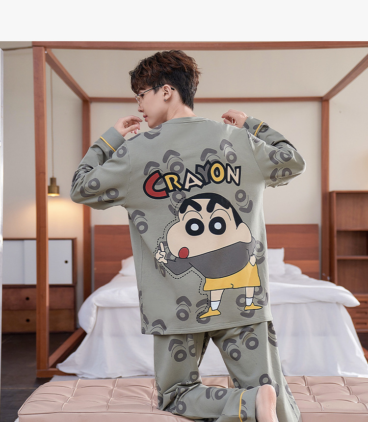 잠옷 남자의 봄과 가을 긴팔 얇은 학생 십대 만화 짱구 겉옷 홈 세트