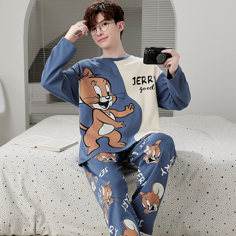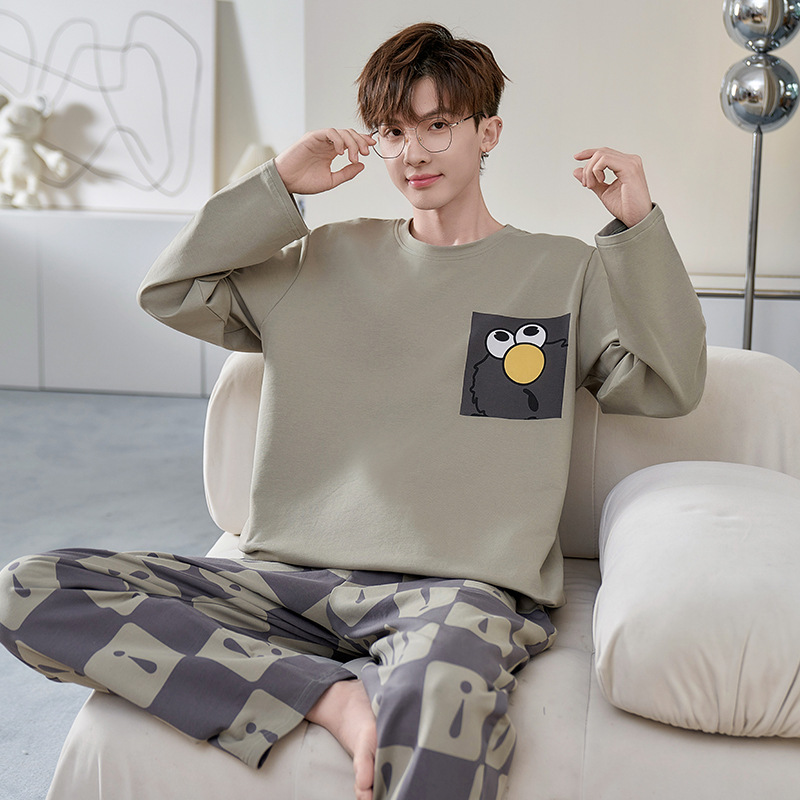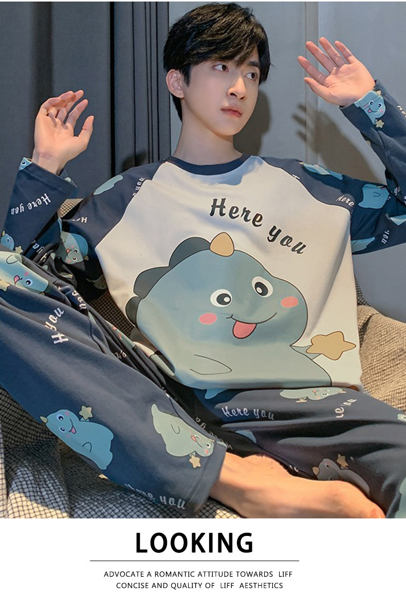 잠옷 남자의 봄과 가을 긴팔 얇은 학생 십대 만화 짱구 겉옷 홈 세트스토어 가기