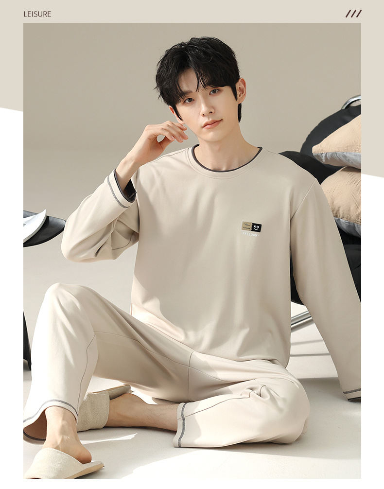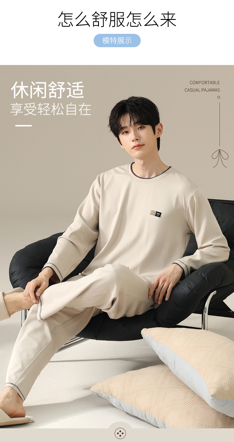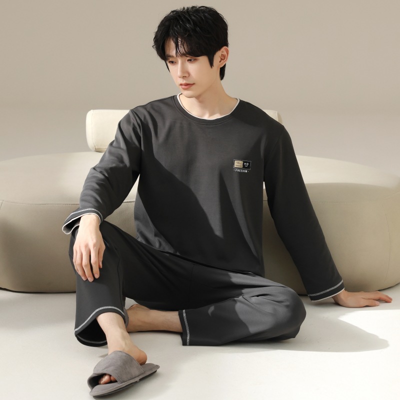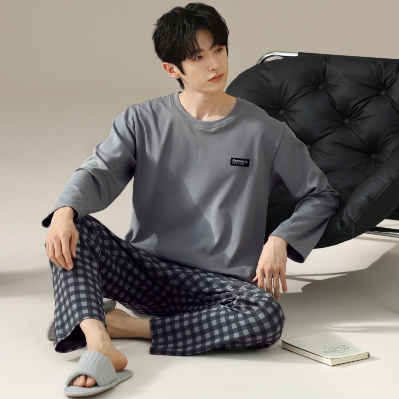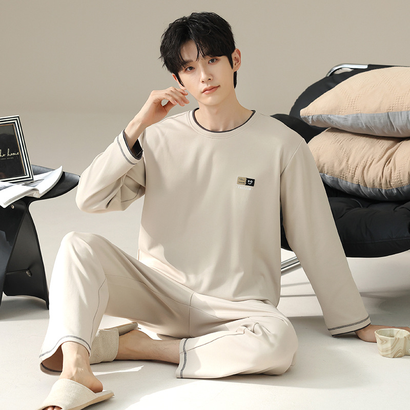 남성용 잠옷 봄, 가을 순면 긴팔 바지 루즈 플러스 지방 플러스 사이즈 십대 남성 가을 홈웨어 세트스토어 가기