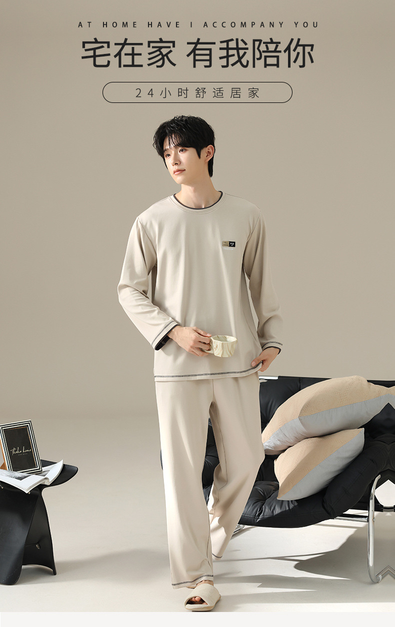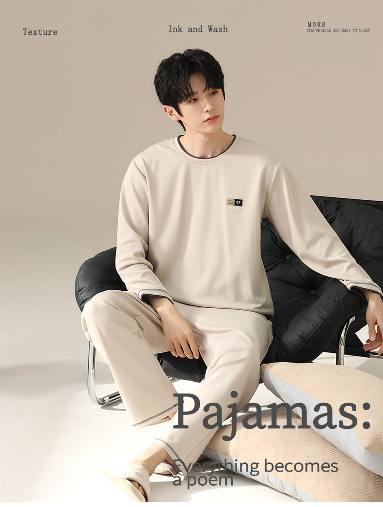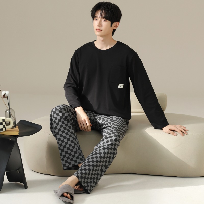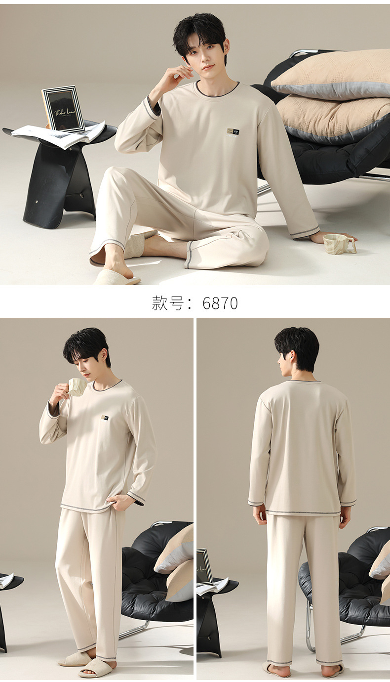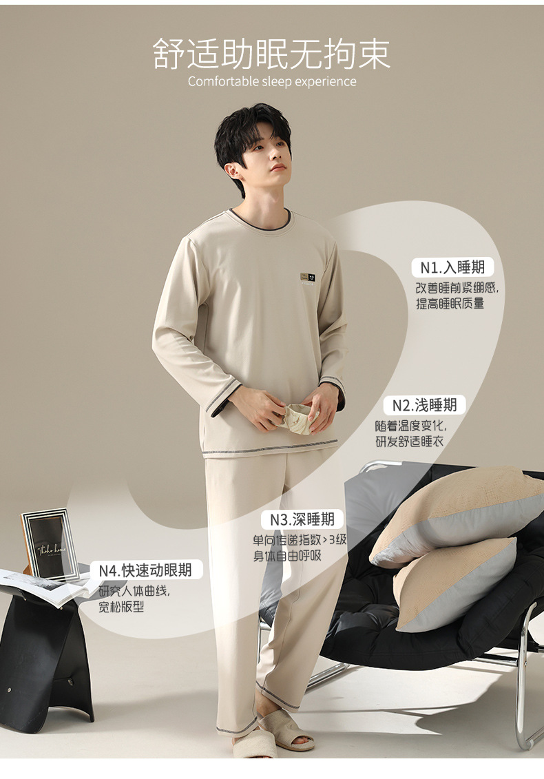 남성용 잠옷 봄, 가을 순면 긴팔 바지 루즈 플러스 지방 플러스 사이즈 십대 남성 가을 홈웨어 세트스토어 가기