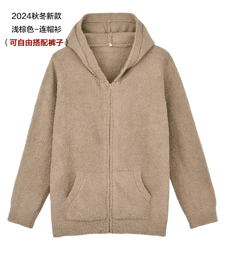 프린트 없는 열가소성 모직 홈웨어 세트 여성용 고급 후드 가디건 남성용 반벨벳 스웨트셔츠 겨울용 잠옷스토어 가기