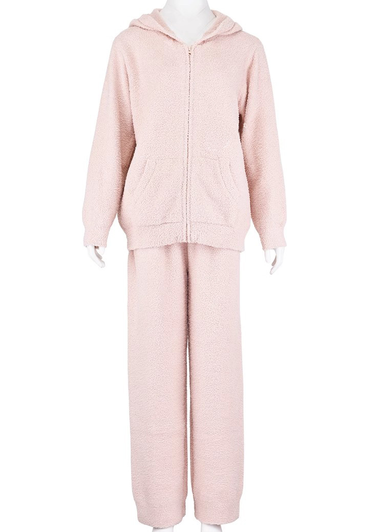 프린트 없는 열가소성 모직 홈웨어 세트 여성용 고급 후드 가디건 남성용 반벨벳 스웨트셔츠 겨울용 잠옷