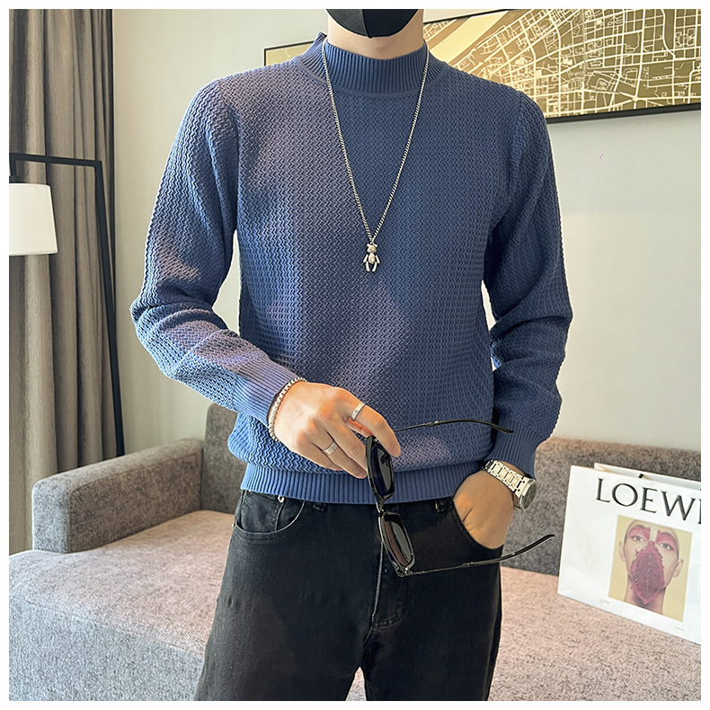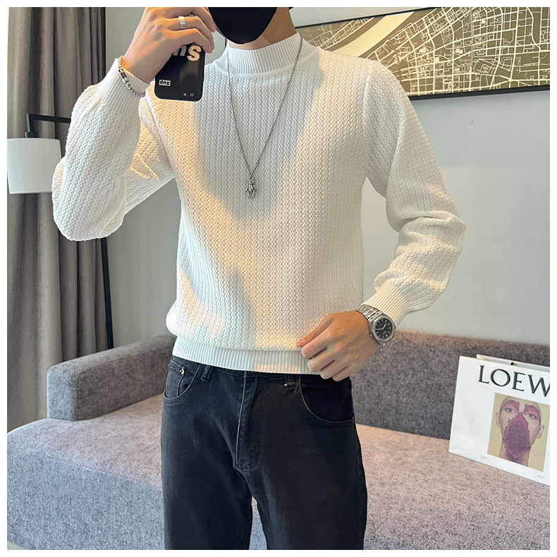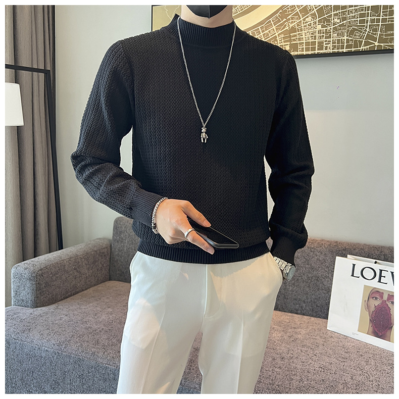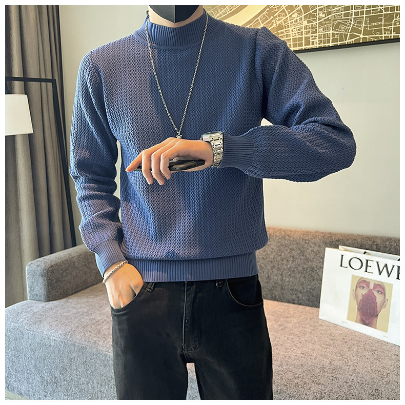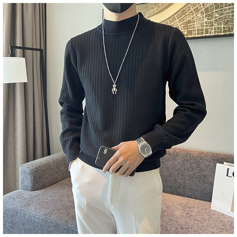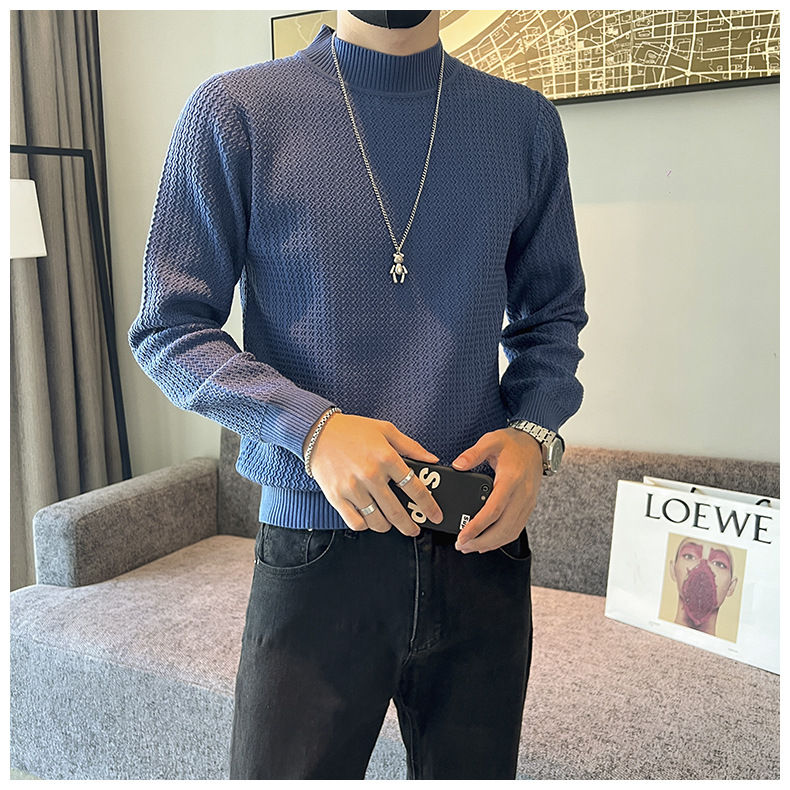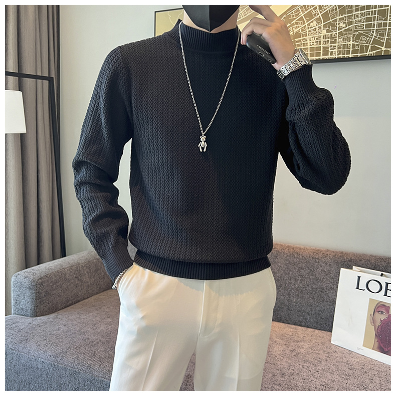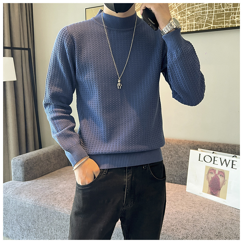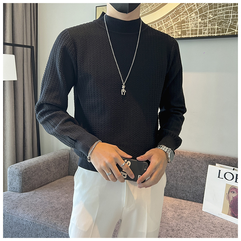 하프 터틀넥 스웨터 남자의 가을과 겨울 단색 캐주얼 베이스 스웨터 일본 스타일 트렌디 한 간단한 잘 생긴 풀오버 스웨터