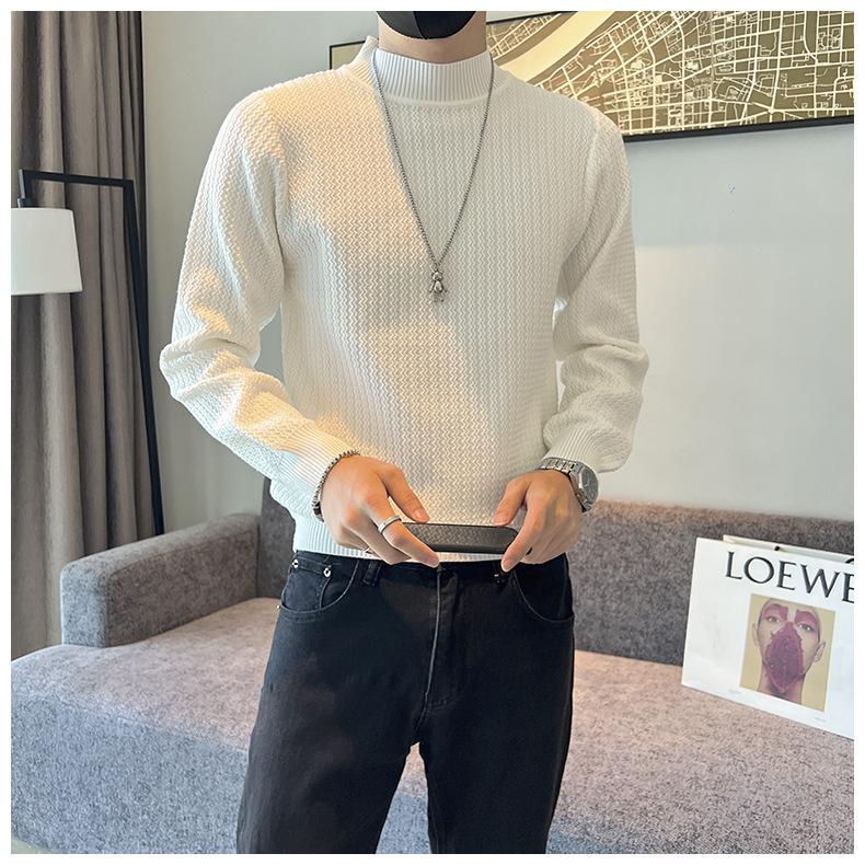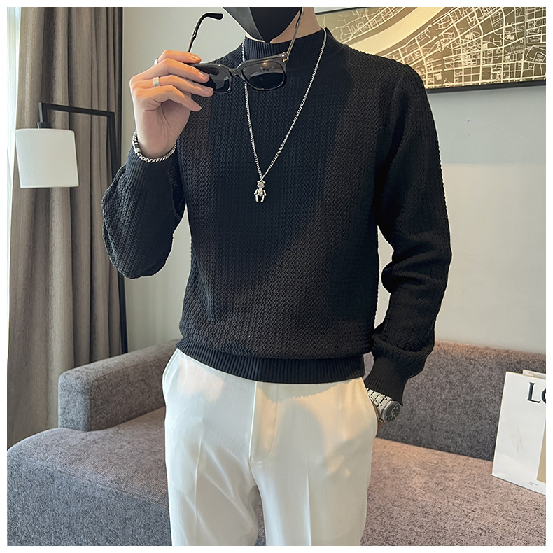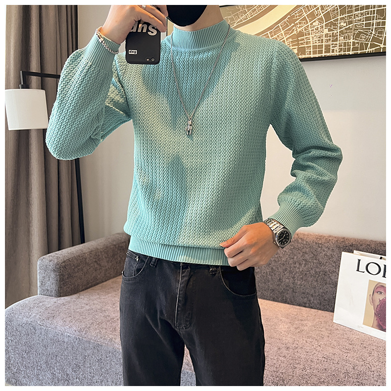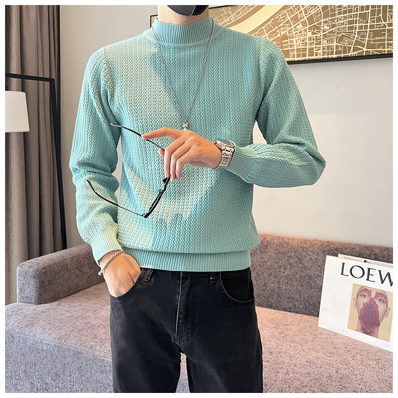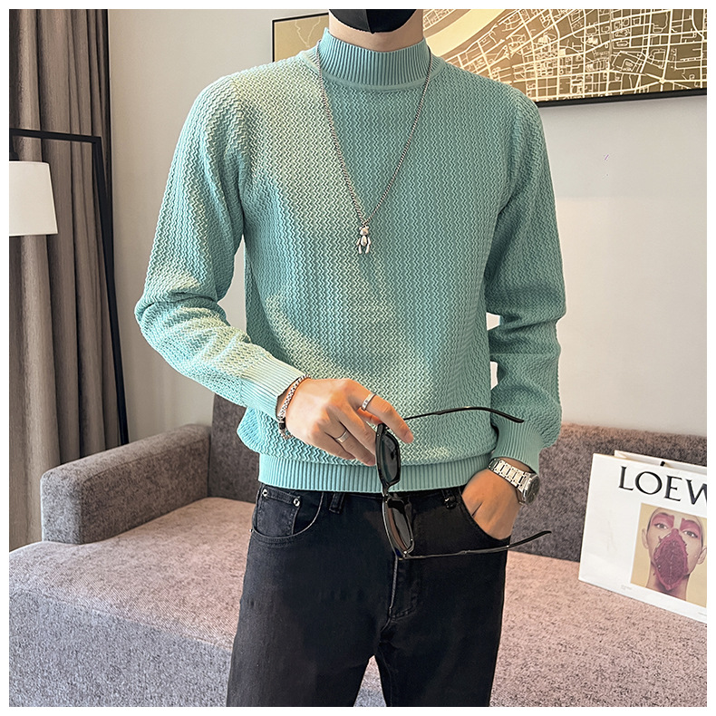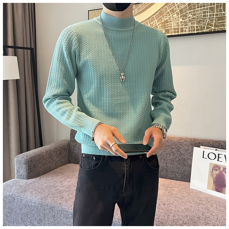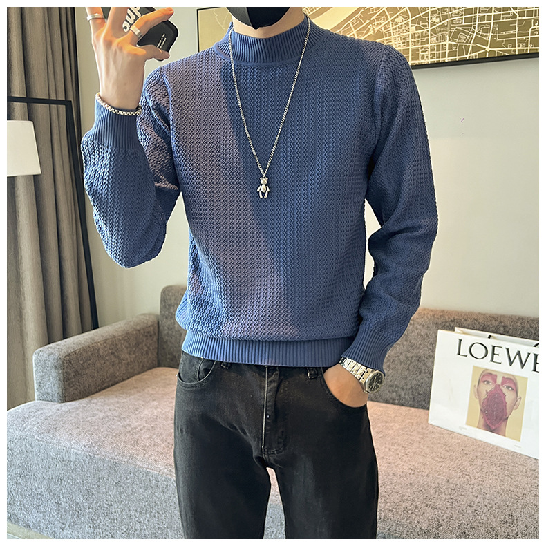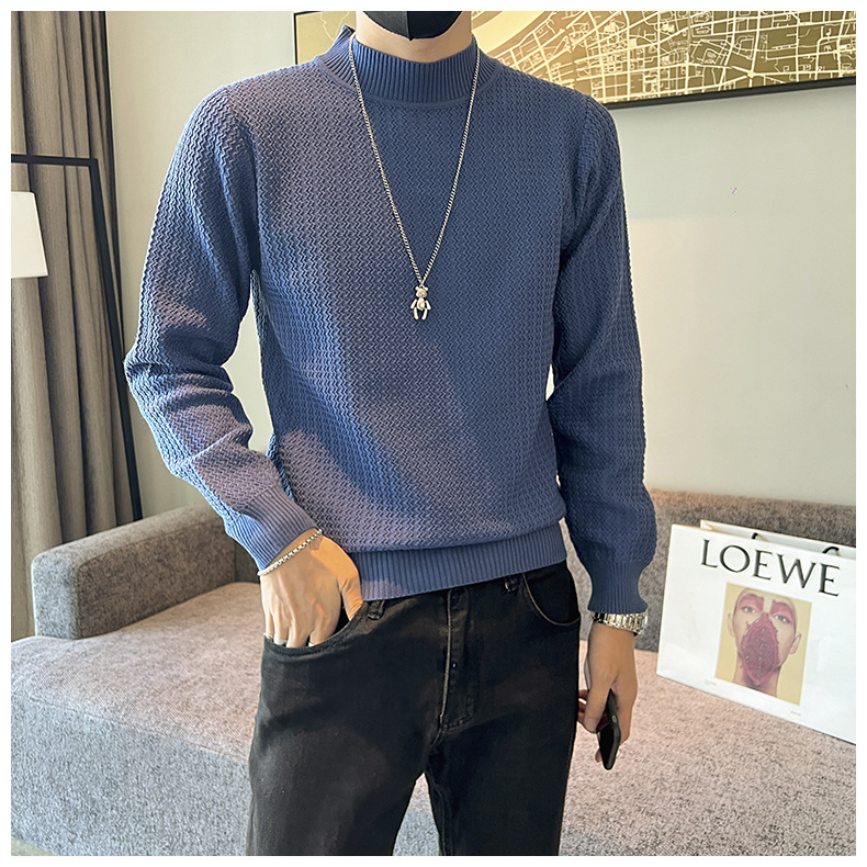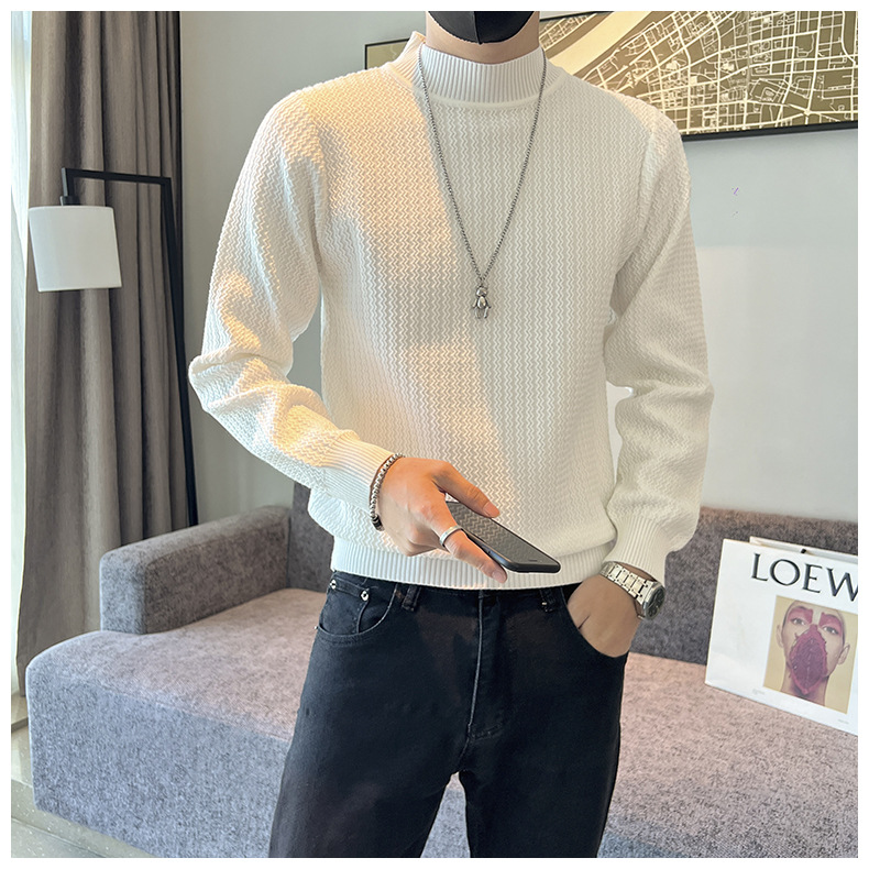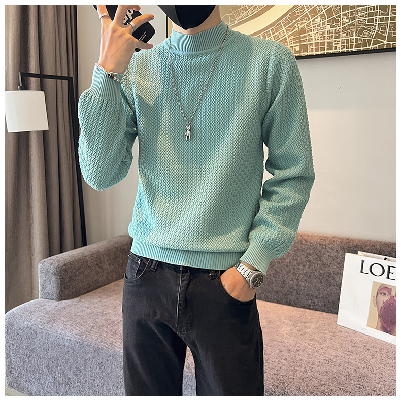 하프 터틀넥 스웨터 남자의 가을과 겨울 단색 캐주얼 베이스 스웨터 일본 스타일 트렌디 한 간단한 잘 생긴 풀오버 스웨터