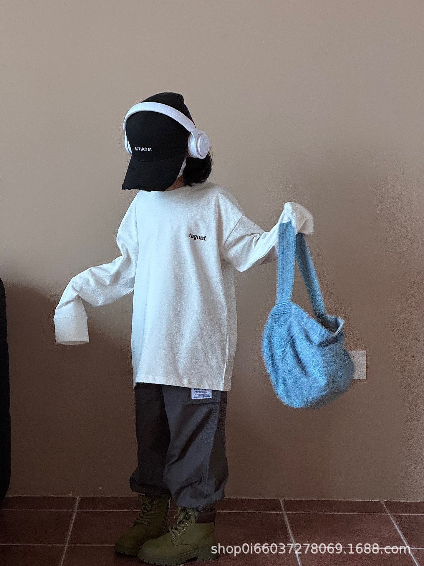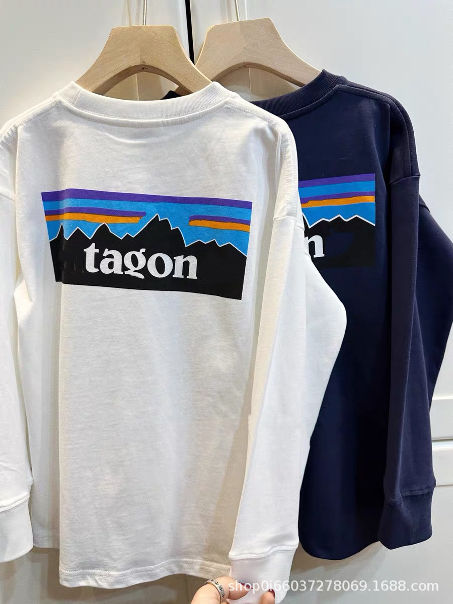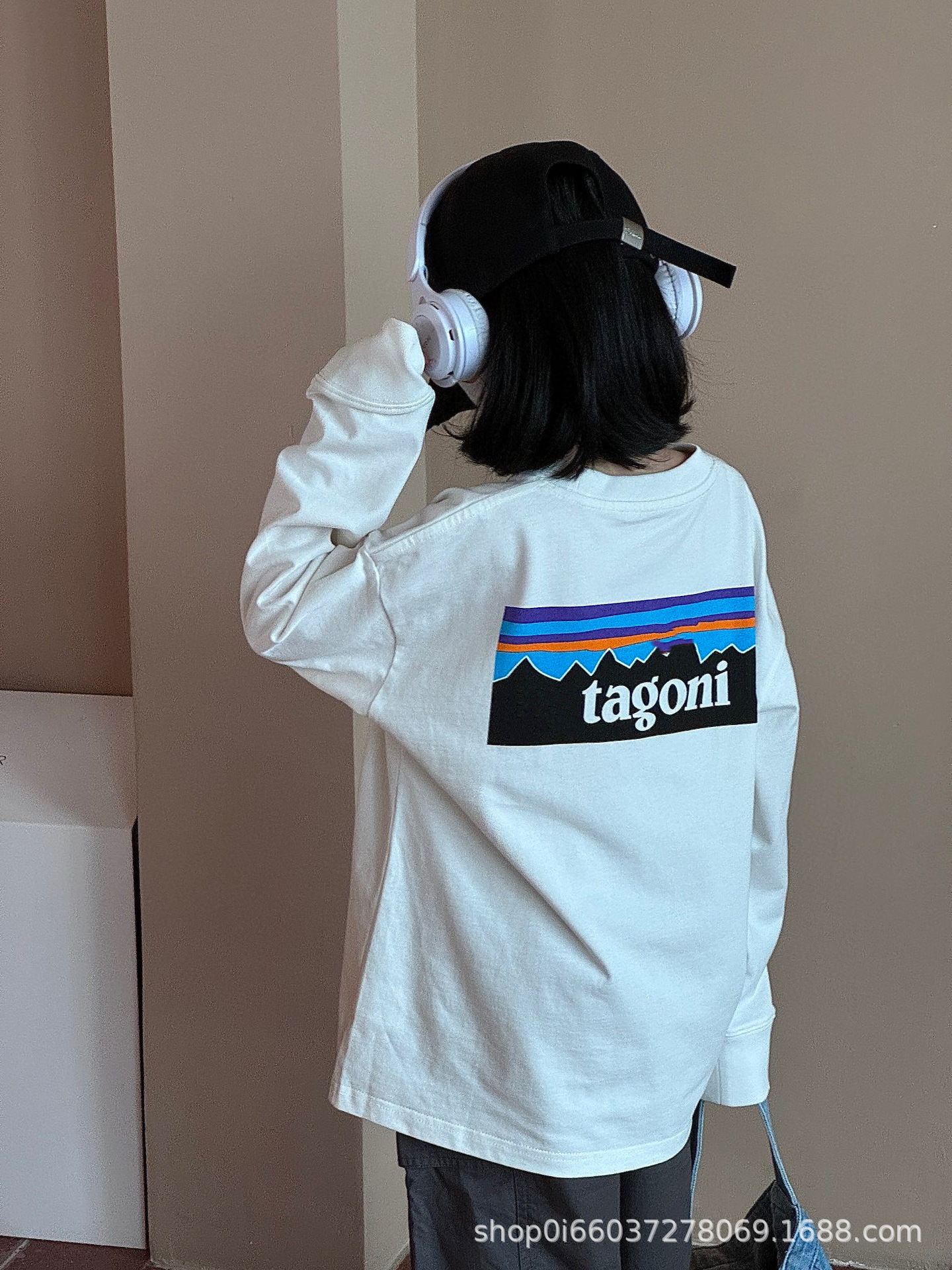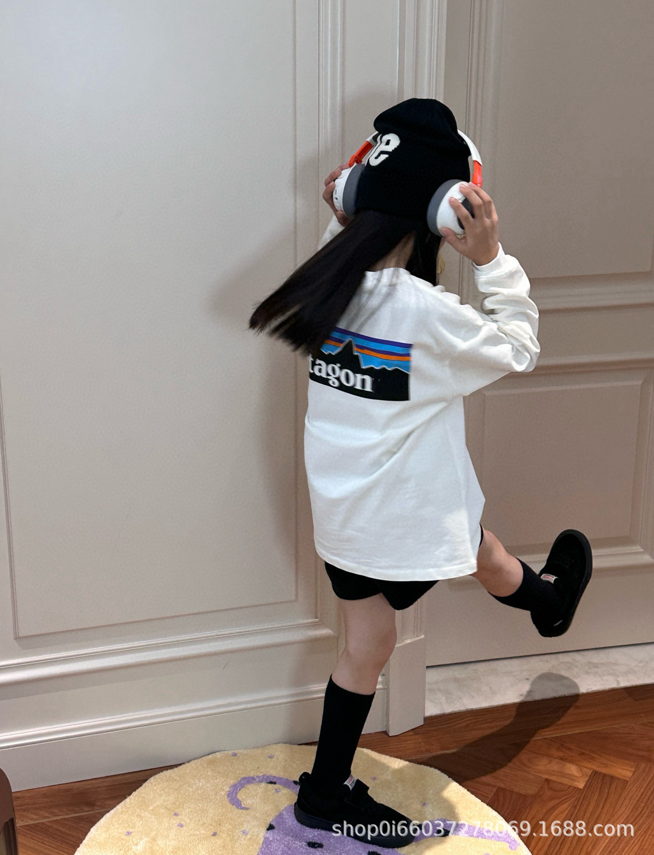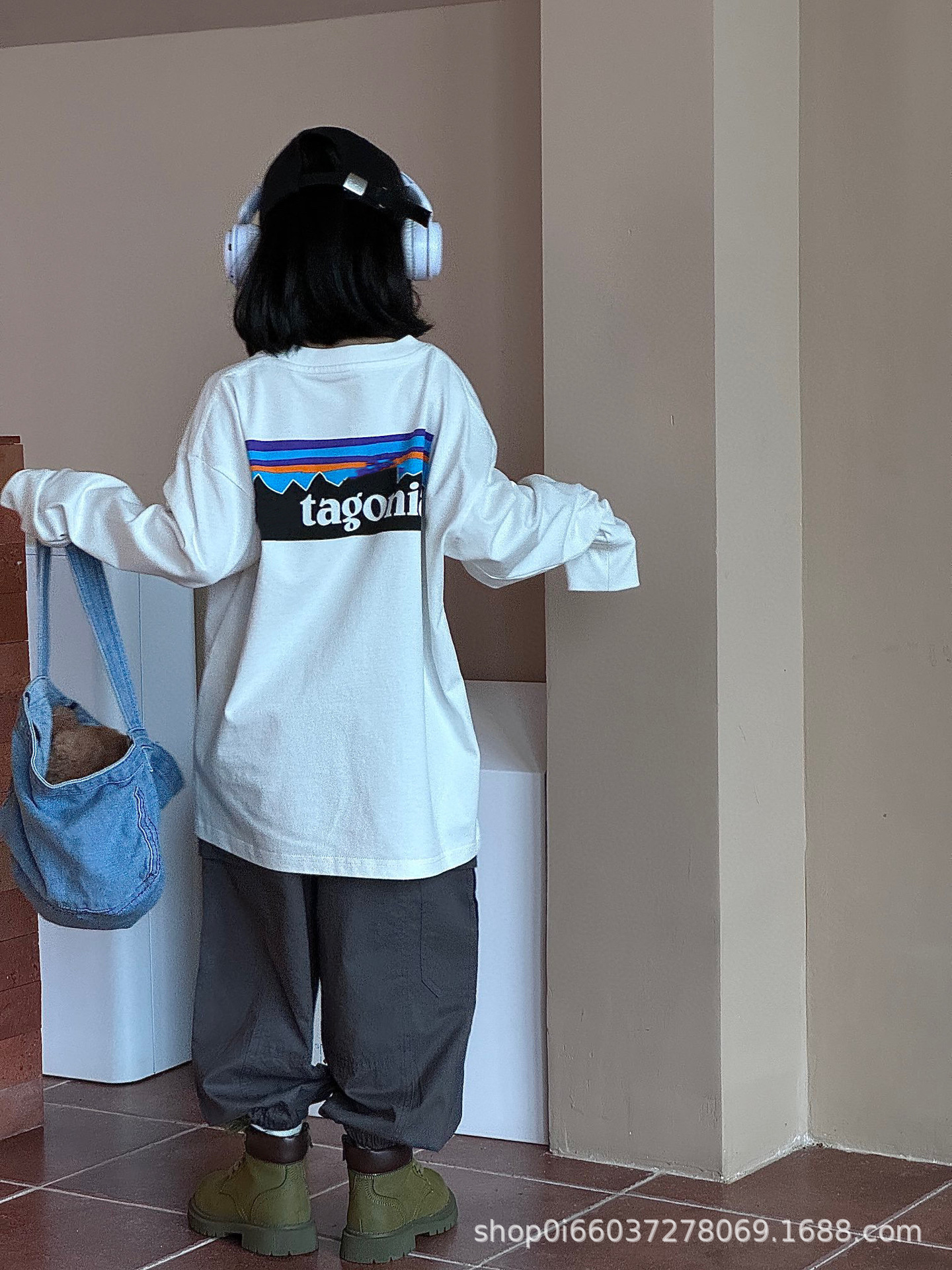 오픈 시즌 소년 간단한 잘 생긴 산 프린트 긴 소매 티셔츠 어린이 야외 레저 느슨한베이스 셔츠