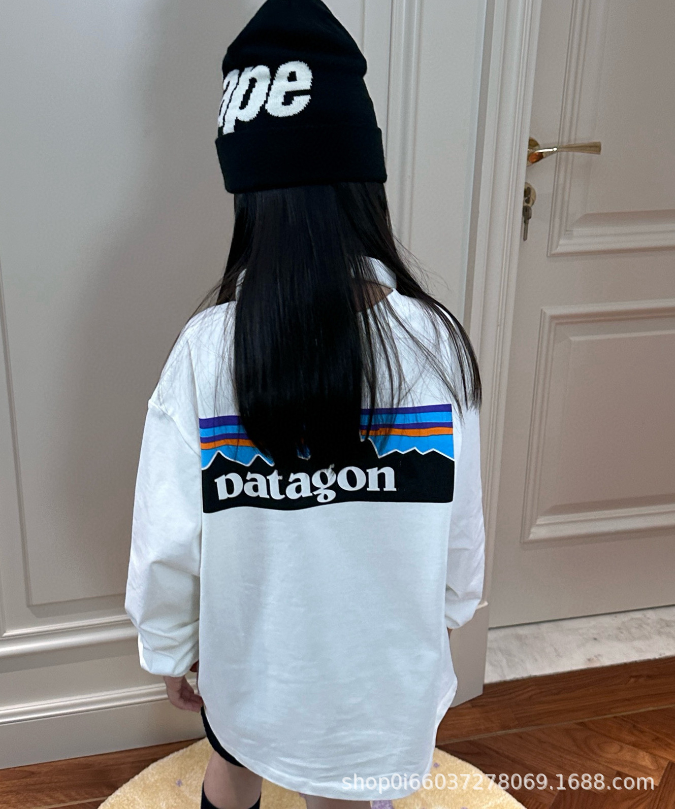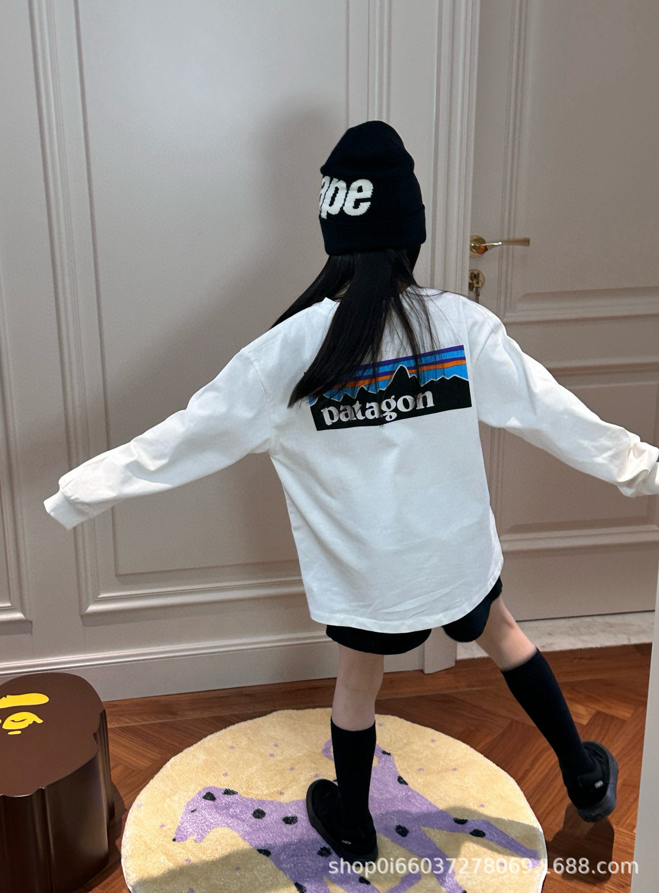 오픈 시즌 소년 간단한 잘 생긴 산 프린트 긴 소매 티셔츠 어린이 야외 레저 느슨한베이스 셔츠스토어 가기