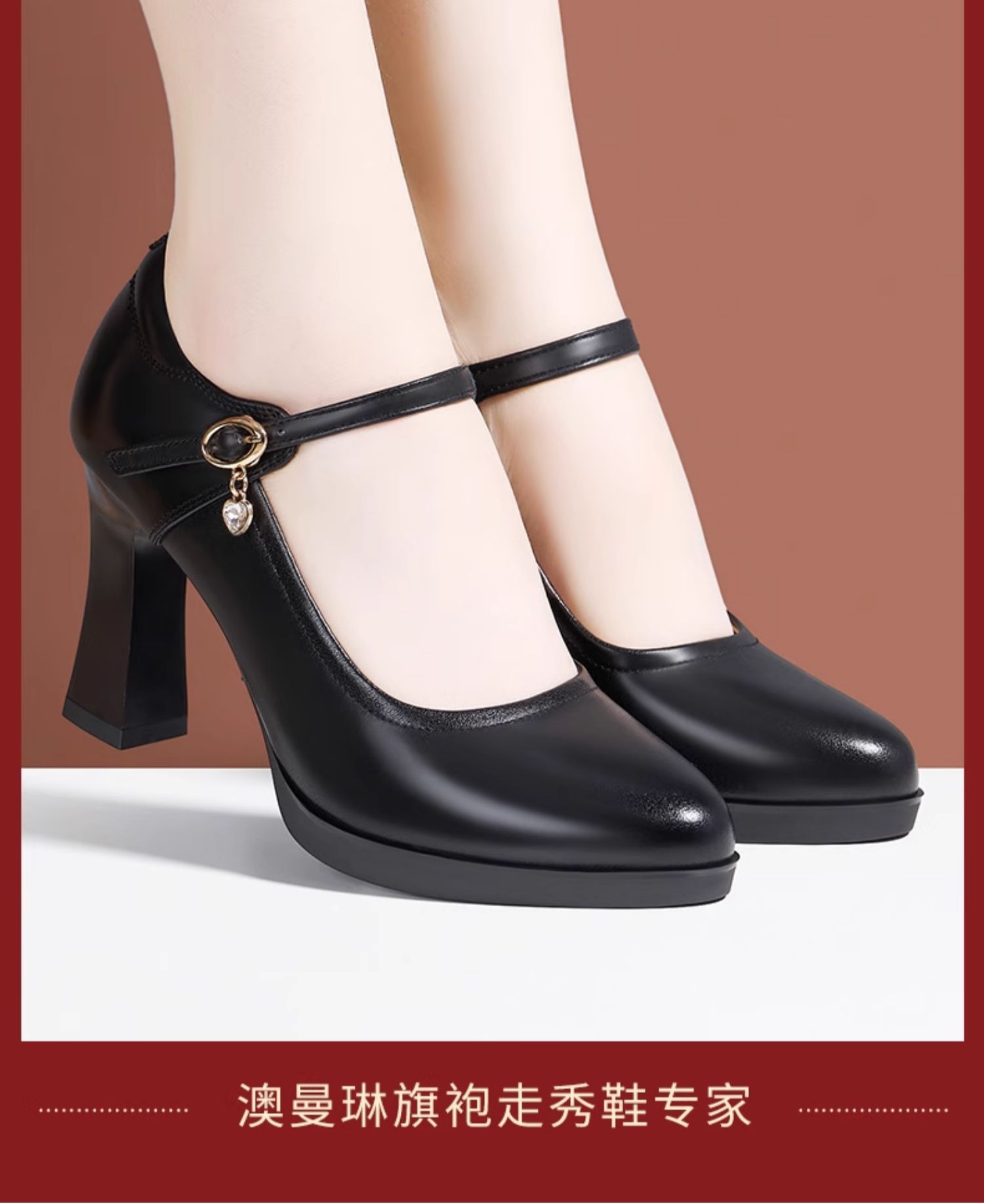 아오만 린 정품 가죽 청삼 모델 캣워크 무대 여성용 방수 플랫폼 두꺼운 힐링 미끄럼 방지 작업 신발스토어 가기