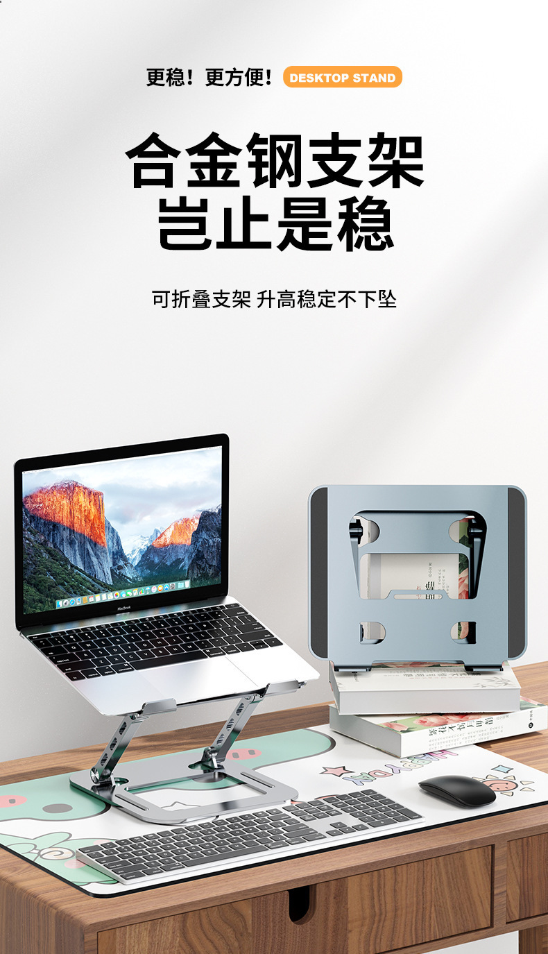국경 핫 세일 노트북 데스크탑 스탠드 금속 접이식 플랫 스탠드 리프팅 스탠드스토어 가기