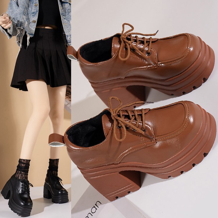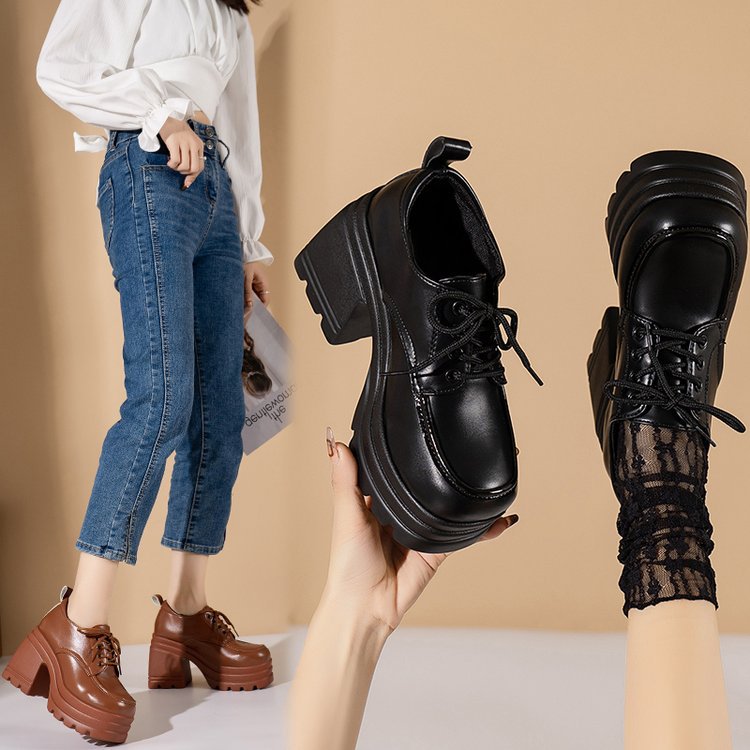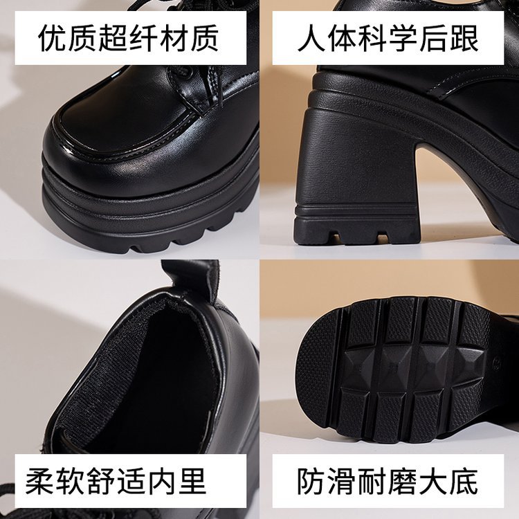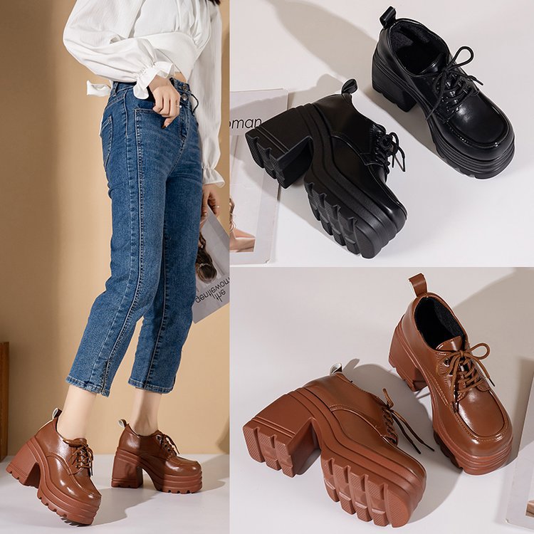 2023 유럽과 미국의 가을과 겨울 새로운 단색 레이스 업 JK 가죽 신발 국경 대외 무역 플러스 사이즈 플랫폼 여성을위한 밑바닥 가죽 신발스토어 가기