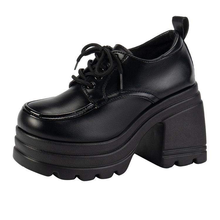 2023 유럽과 미국의 가을과 겨울 새로운 단색 레이스 업 JK 가죽 신발 국경 대외 무역 플러스 사이즈 플랫폼 여성을위한 밑바닥 가죽 신발