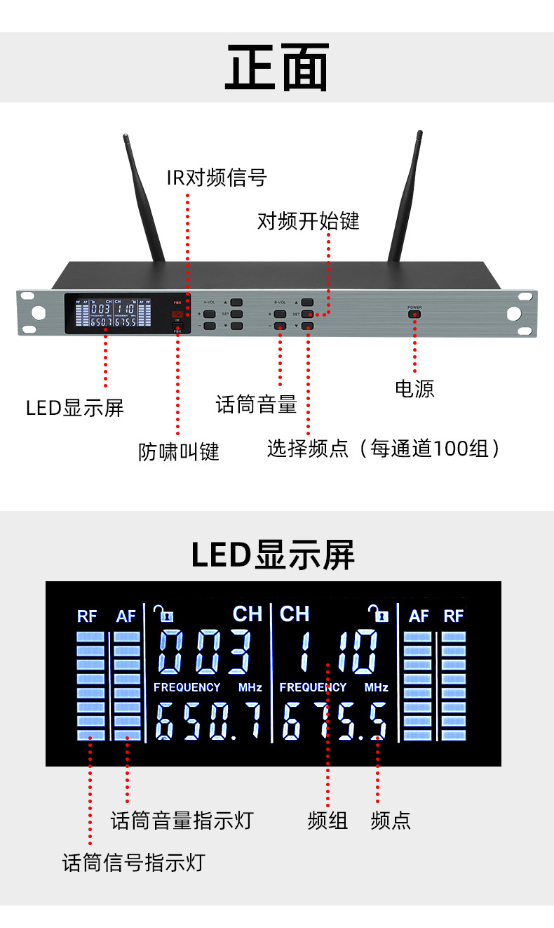 국경을 넘는 인기 상품, 공장 도매 전문 무선 마이크, 노래용 1대2 무선 핸드헬드 마이크, 가정용 KTV
