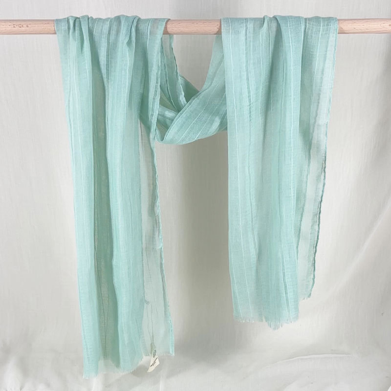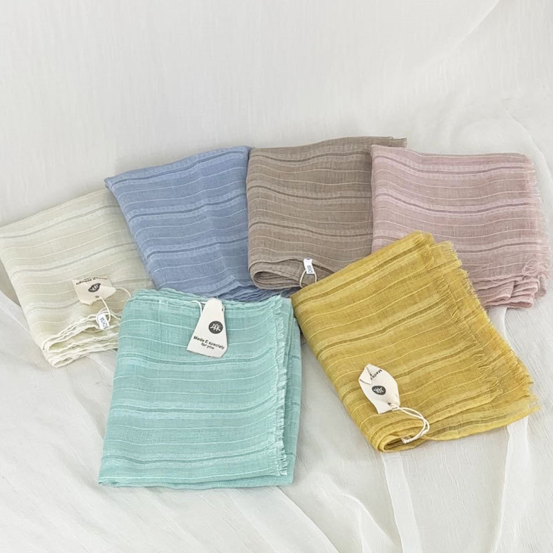 일본과 한국 대외 무역 2024 새로운 짧은 수염 면과 린넨 스카프 단색 간단한 선 스크린 목도리 예술적 신선한 얇은 실크 스카프스토어 가기