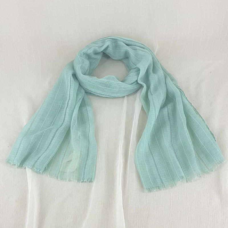 일본과 한국 대외 무역 2024 새로운 짧은 수염 면과 린넨 스카프 단색 간단한 선 스크린 목도리 예술적 신선한 얇은 실크 스카프