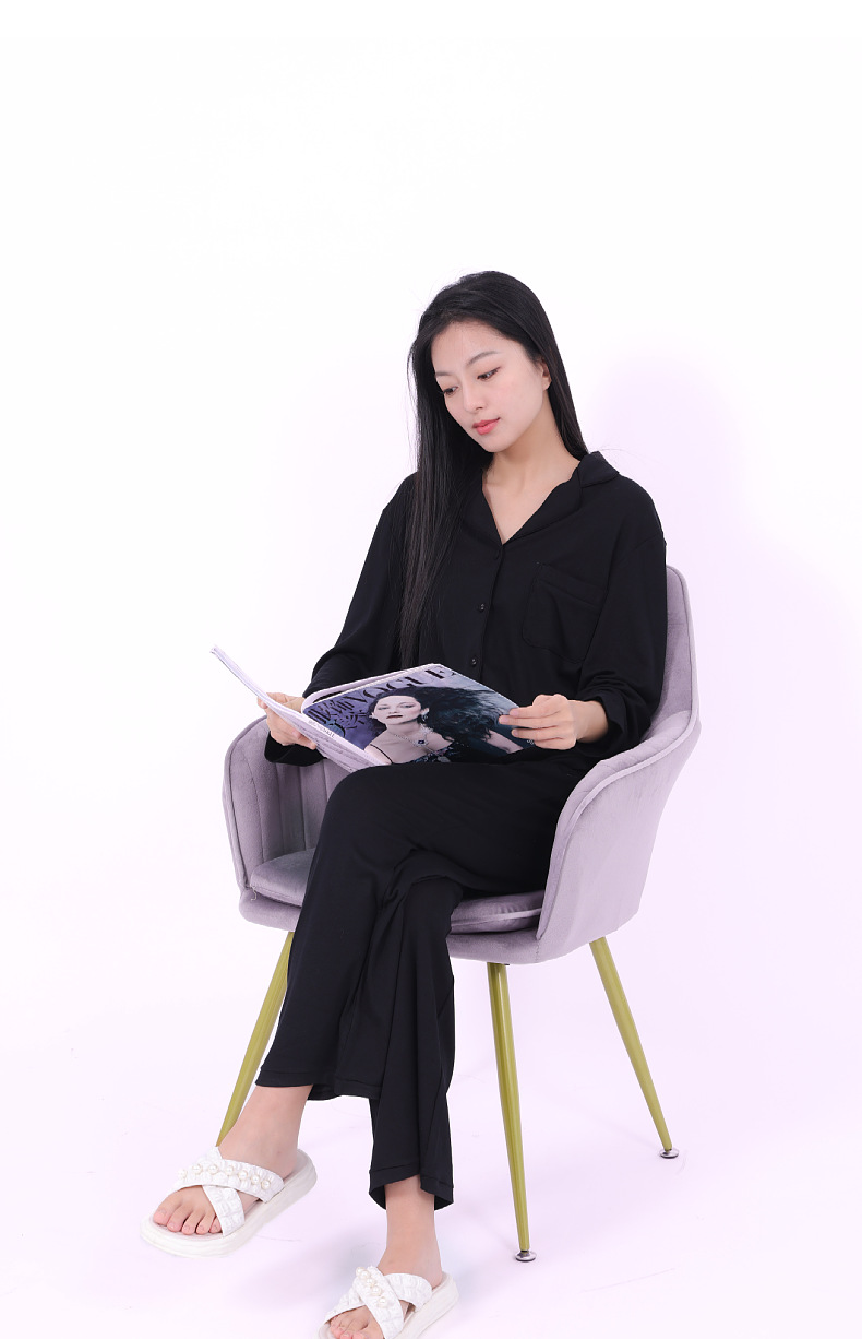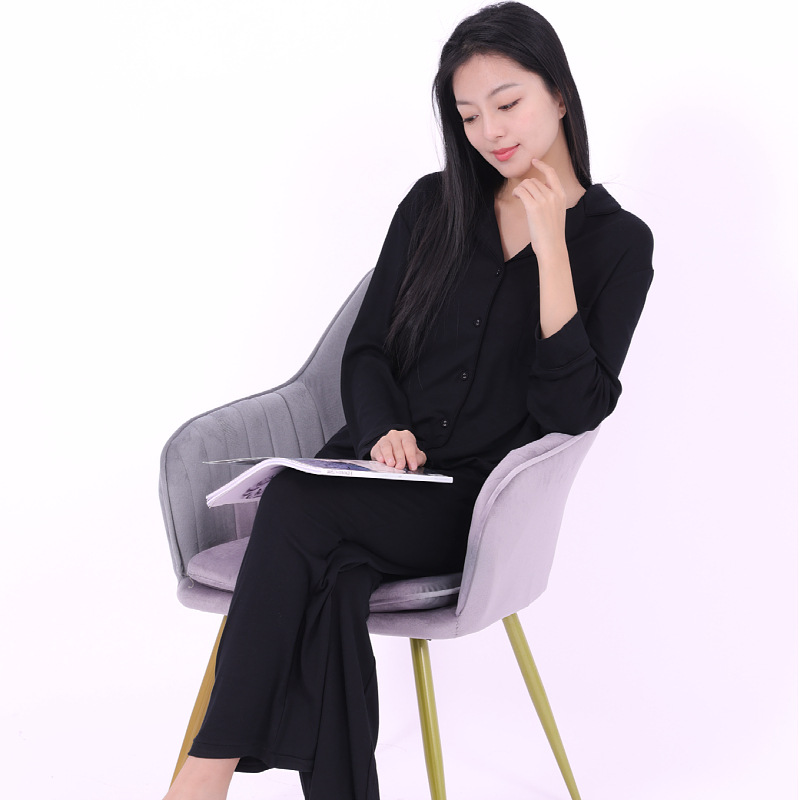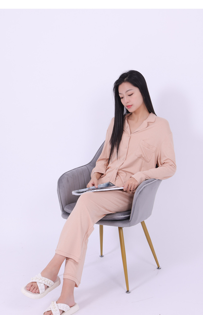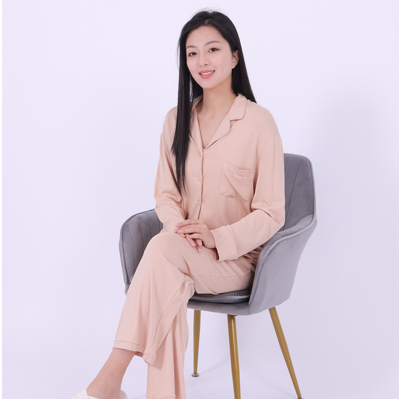 공장 현장 봄, 가을, 겨울 유럽과 미국 스타일의 여성 가정 의류 여성 겉옷 세트 여성 도매를위한 갈색 모달 잠옷