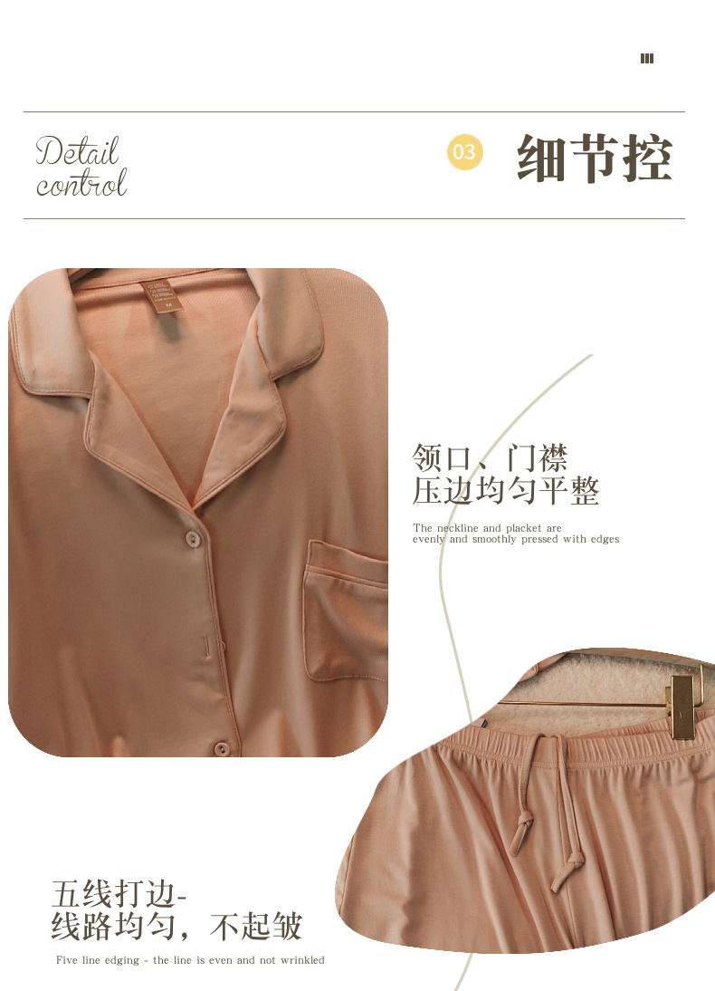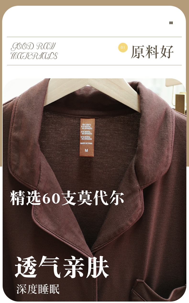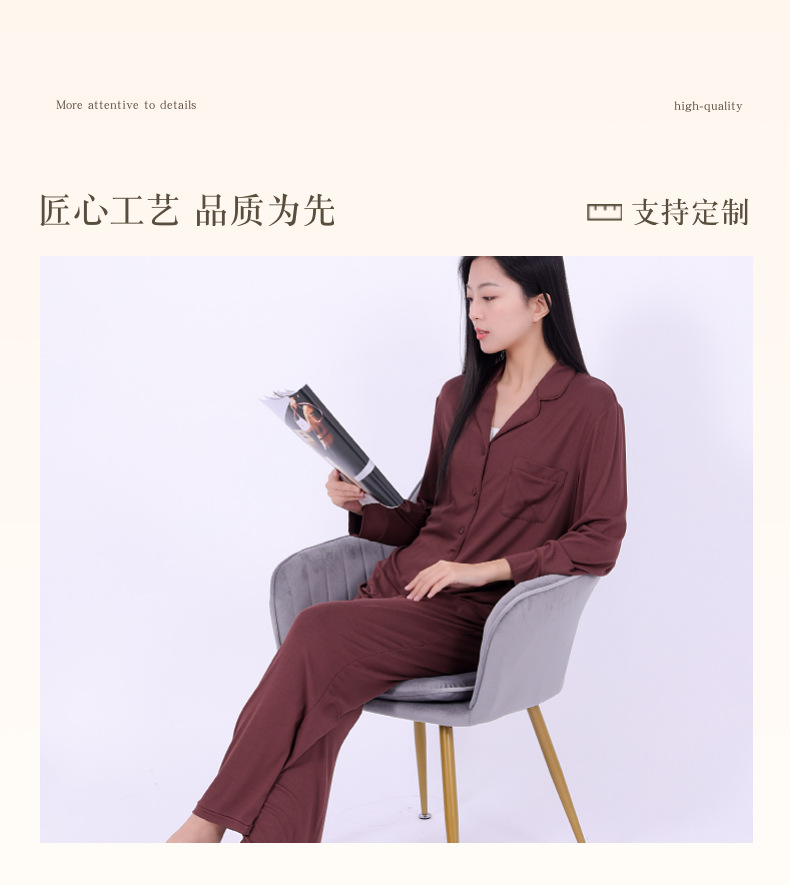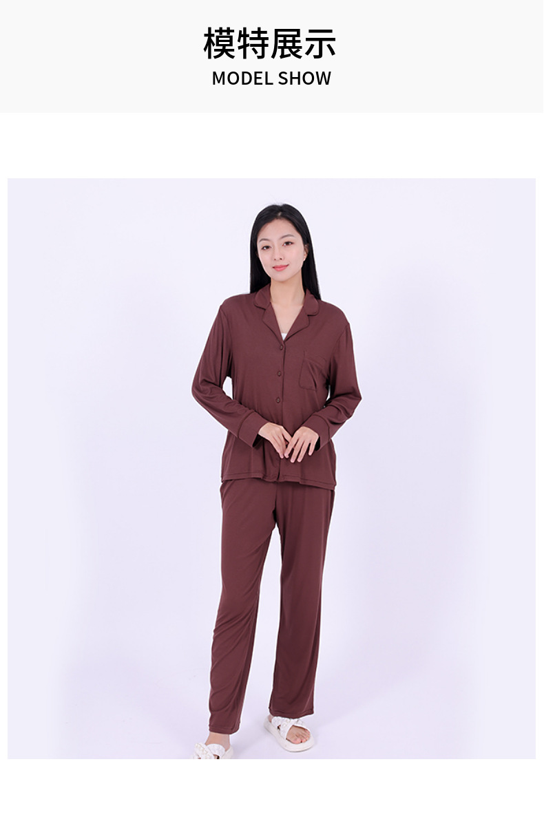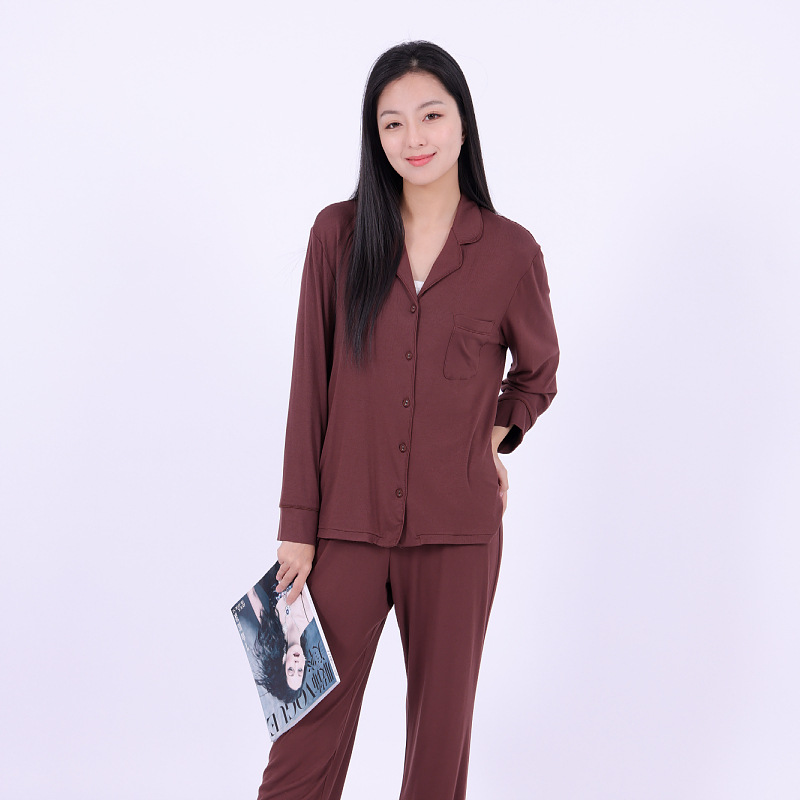 공장 현장 봄, 가을, 겨울 유럽과 미국 스타일의 여성 가정 의류 여성 겉옷 세트 여성 도매를위한 갈색 모달 잠옷스토어 가기