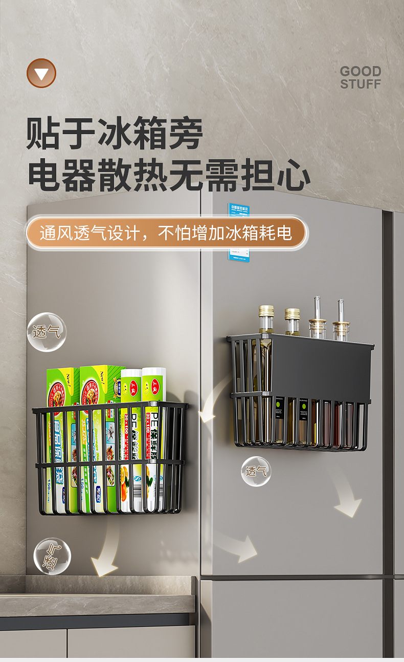 주방 냉장고 보관 랙 보존 백 종이 타월 아티팩트 냉장고 측면 보관 상자 조정 가능한 제품 보존 필름 보관 랙스토어 가기