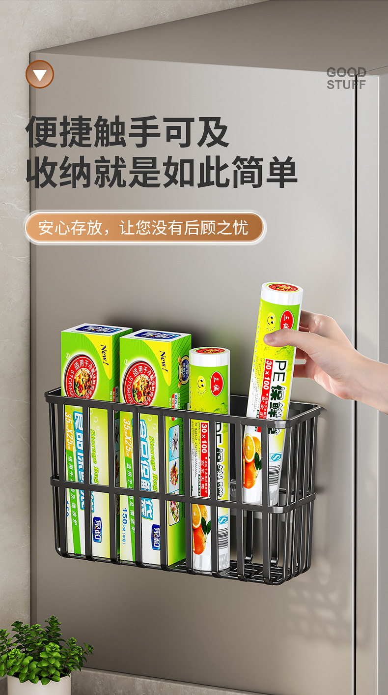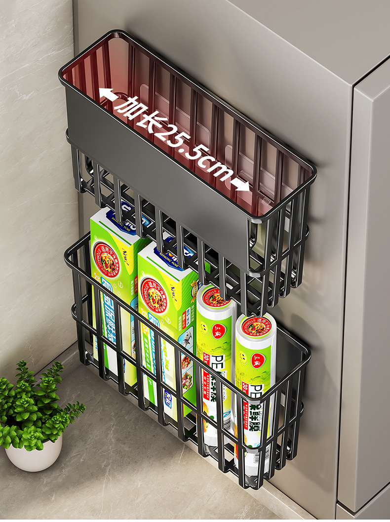 주방 냉장고 보관 랙 보존 백 종이 타월 아티팩트 냉장고 측면 보관 상자 조정 가능한 제품 보존 필름 보관 랙