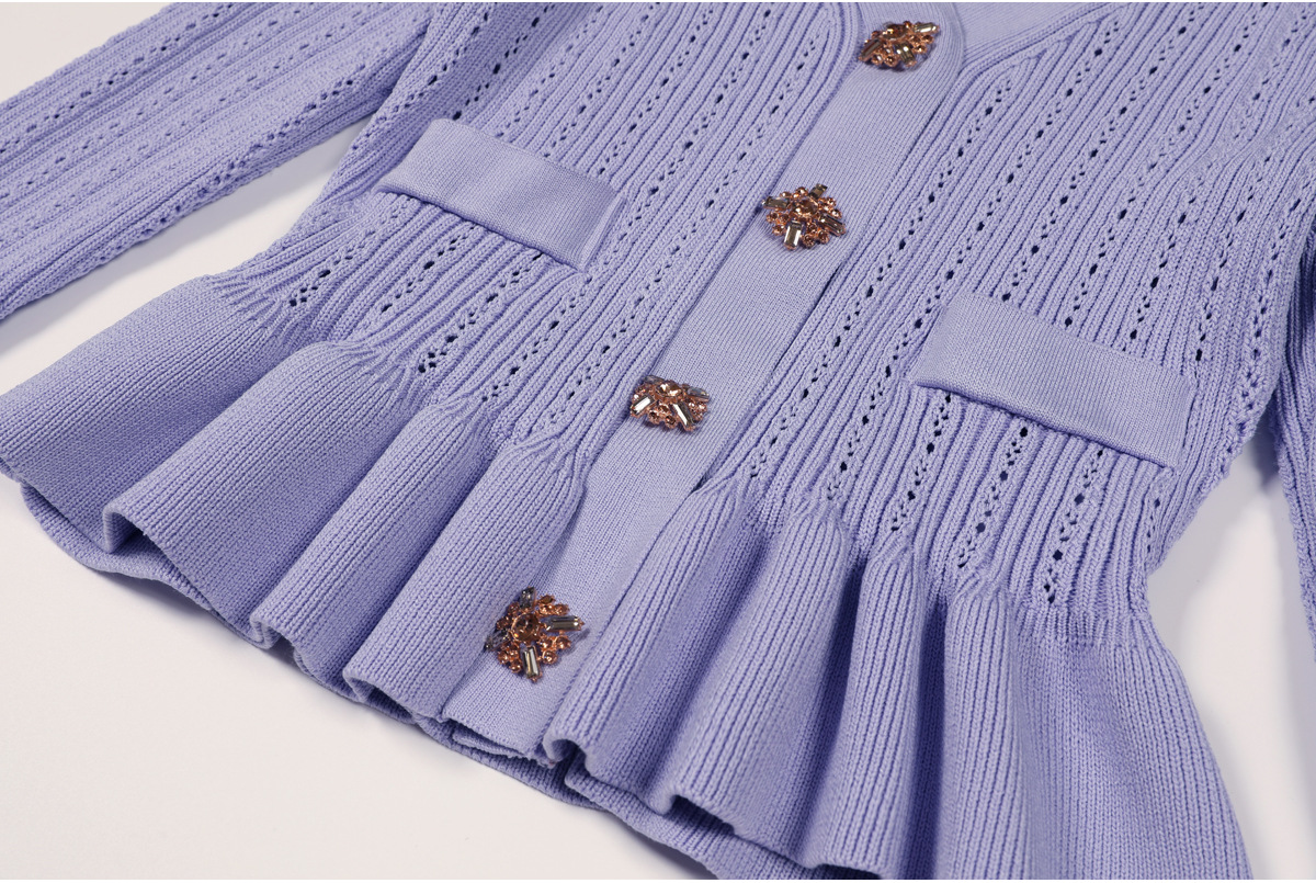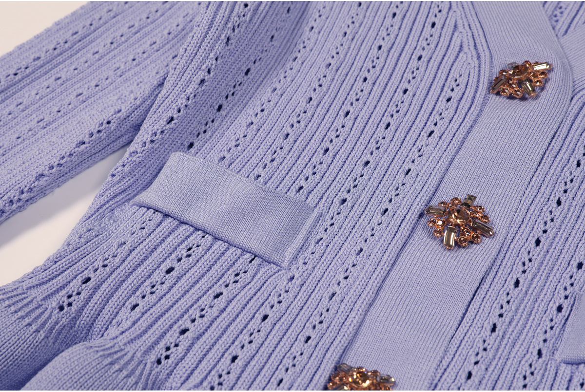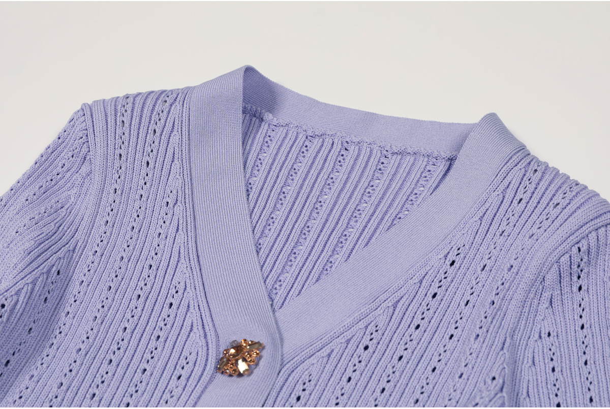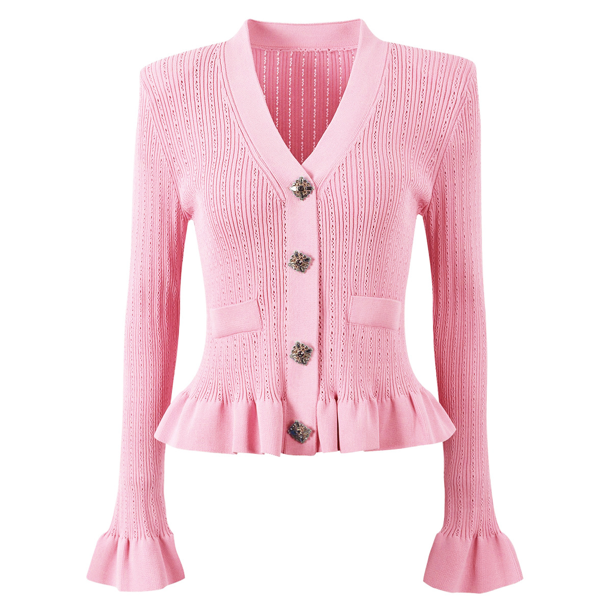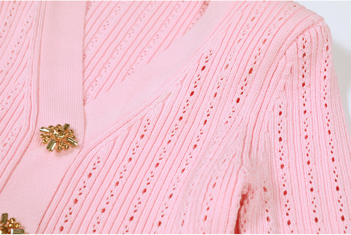 24145 고급 버전, 봄 가을 신상품, 다이아몬드 버클 여성용 니트 코트, 다용도 패셔너블 니트 탑 가디건
