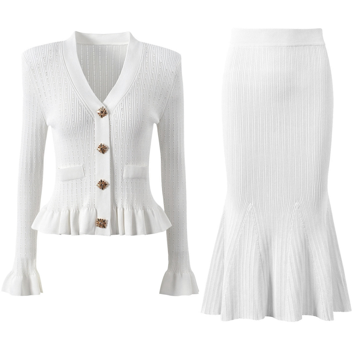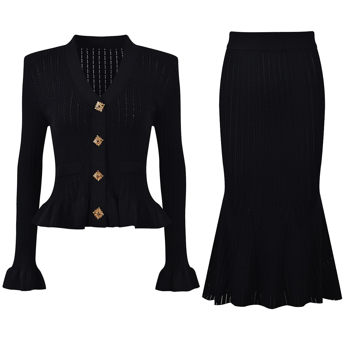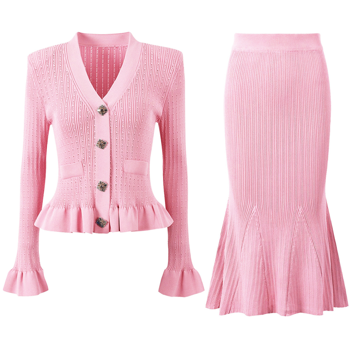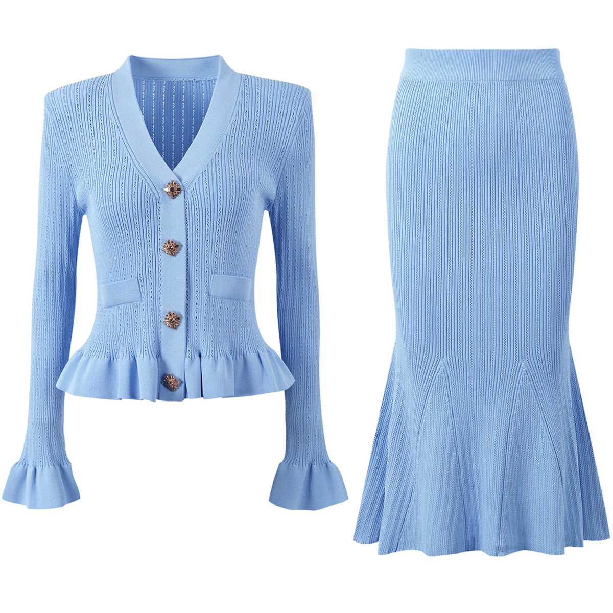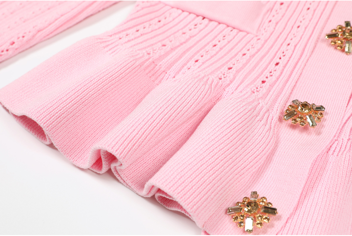 24145 고급 버전, 봄 가을 신상품, 다이아몬드 버클 여성용 니트 코트, 다용도 패셔너블 니트 탑 가디건