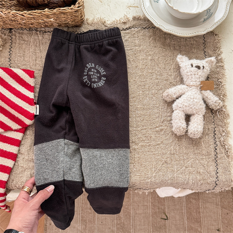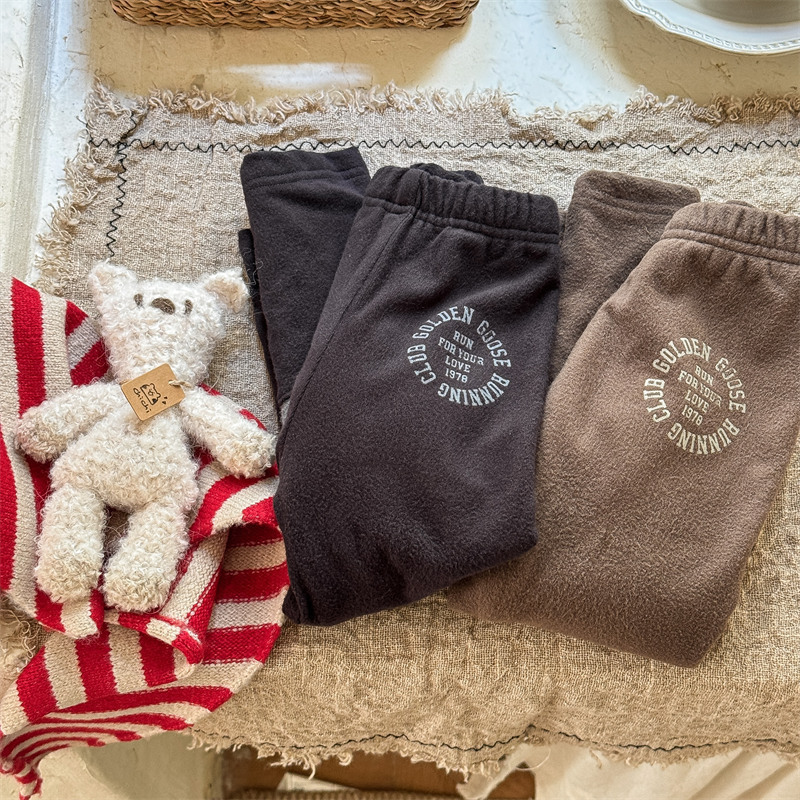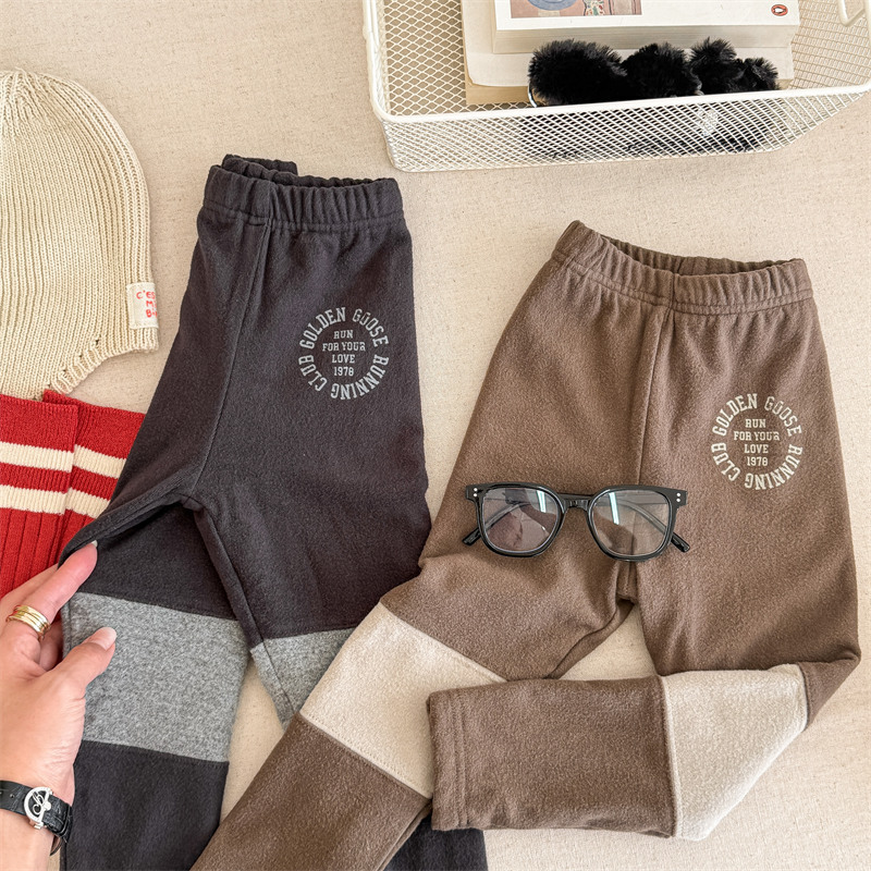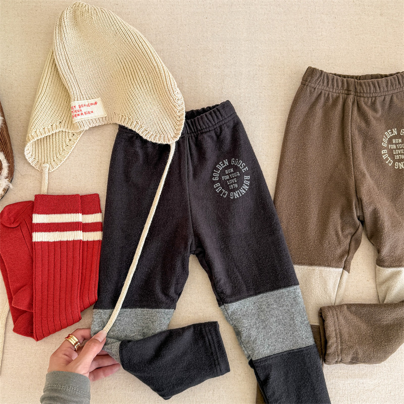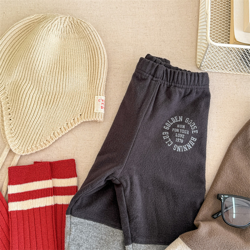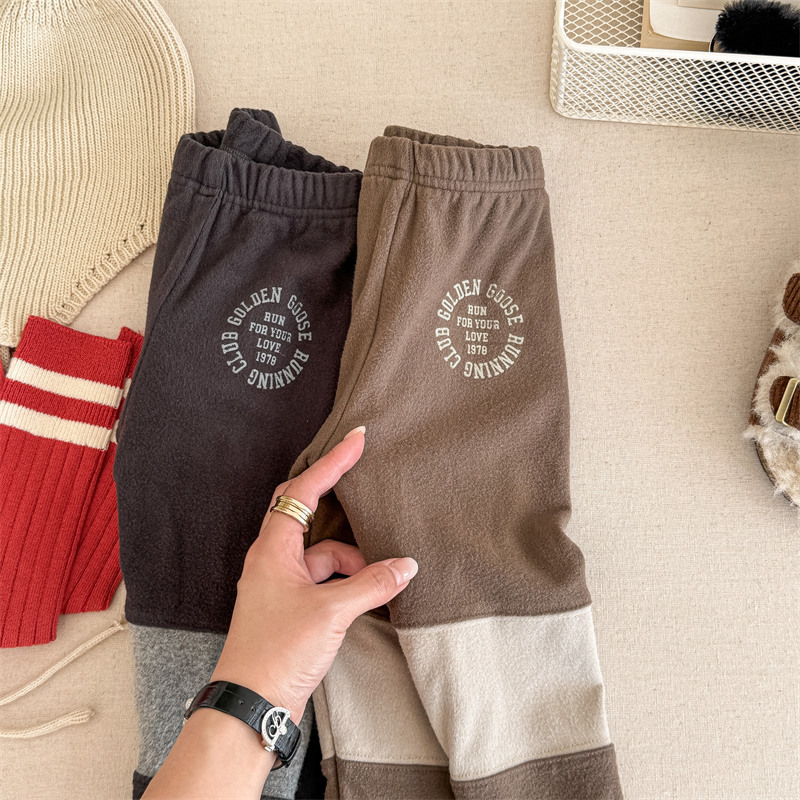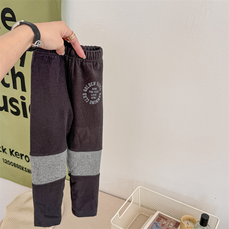 2024 년 겨울 어린이 기모 레깅스 어린이 컬러 매칭 편지 인쇄 솔질 따뜻한 레깅스 레깅스
