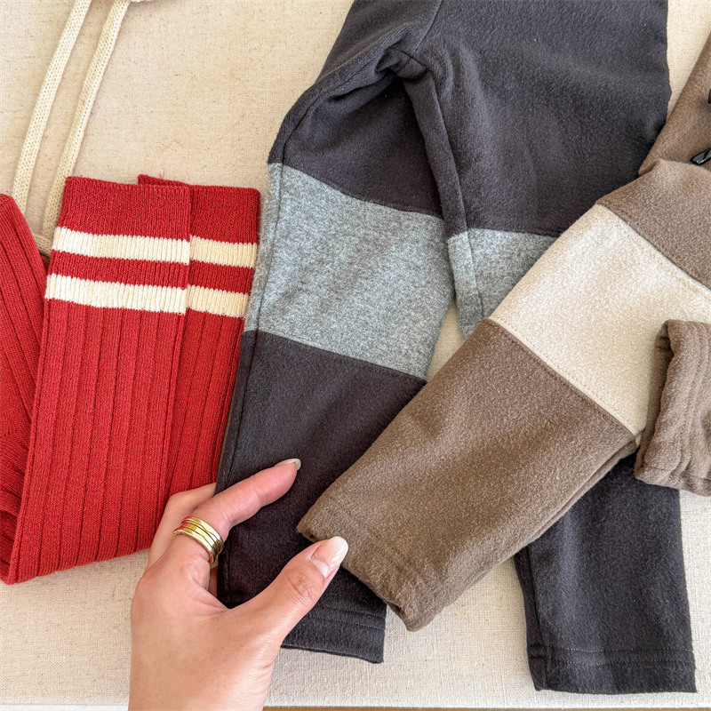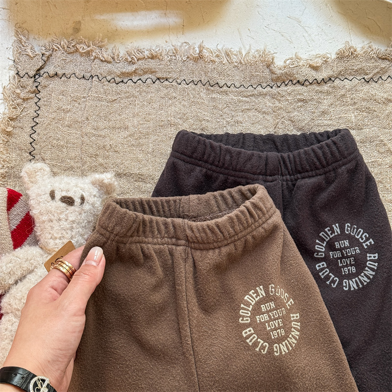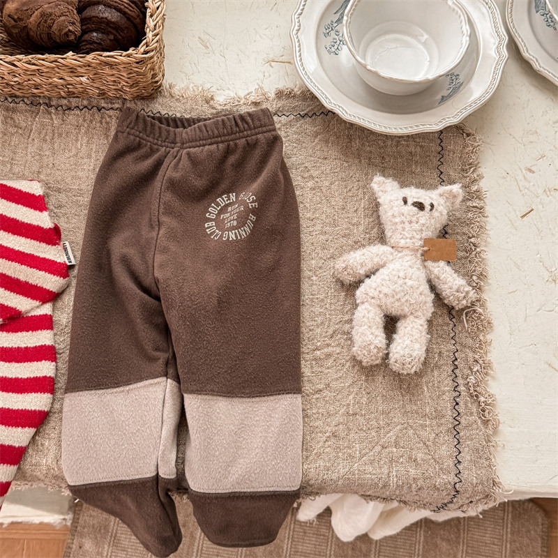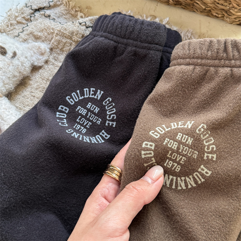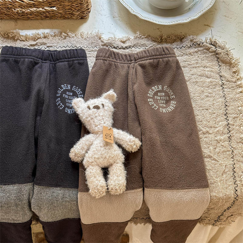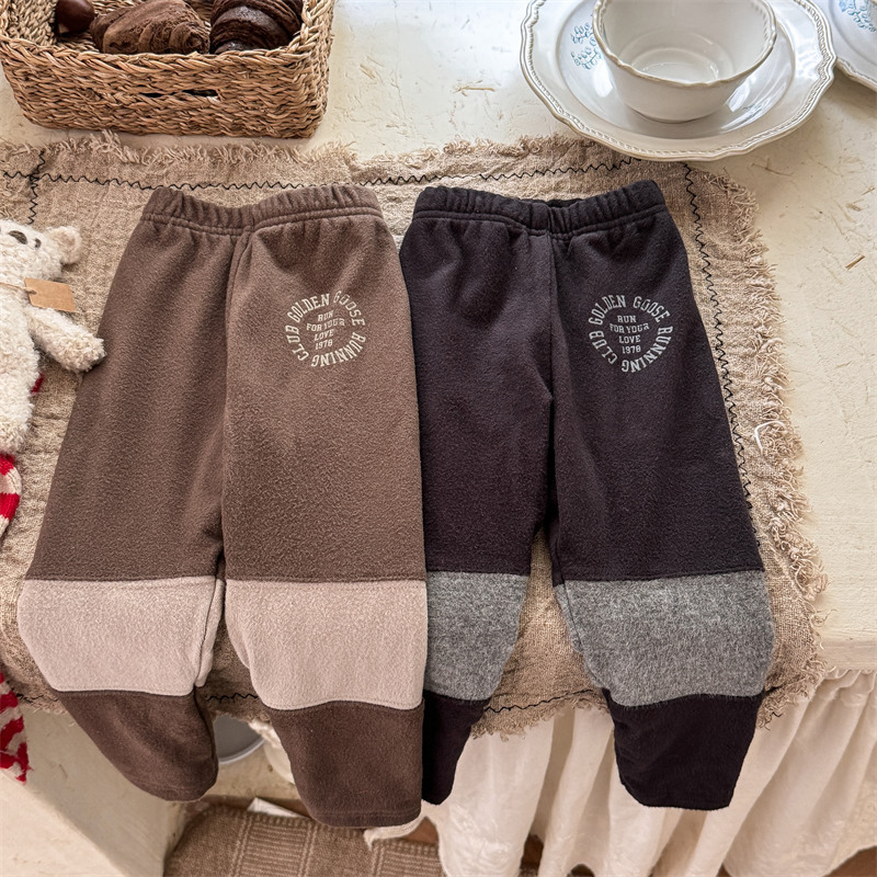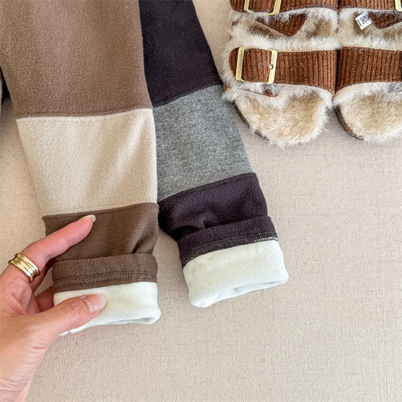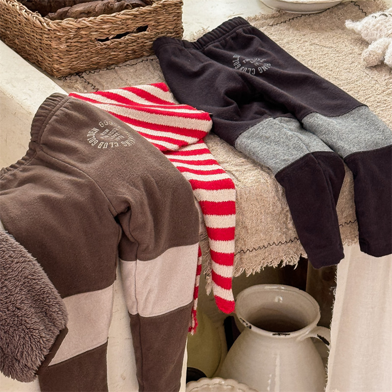 2024 년 겨울 어린이 기모 레깅스 어린이 컬러 매칭 편지 인쇄 솔질 따뜻한 레깅스 레깅스