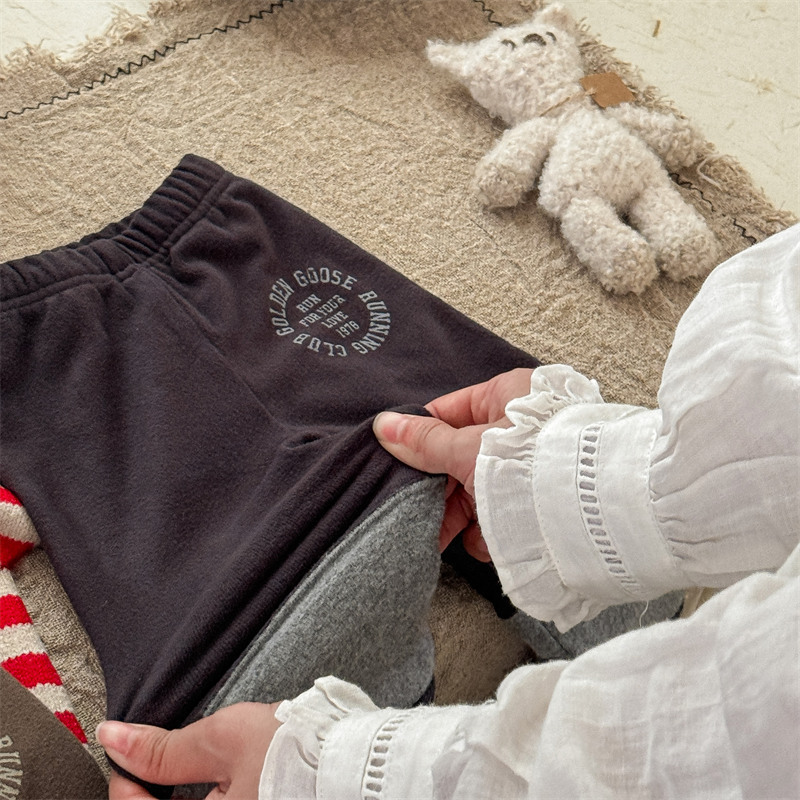 2024 년 겨울 어린이 기모 레깅스 어린이 컬러 매칭 편지 인쇄 솔질 따뜻한 레깅스 레깅스스토어 가기