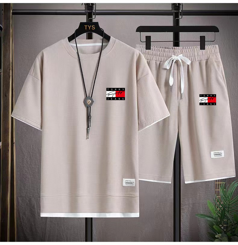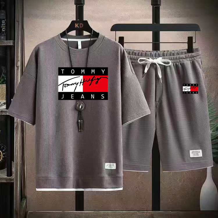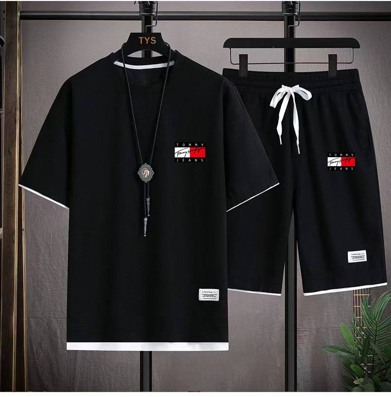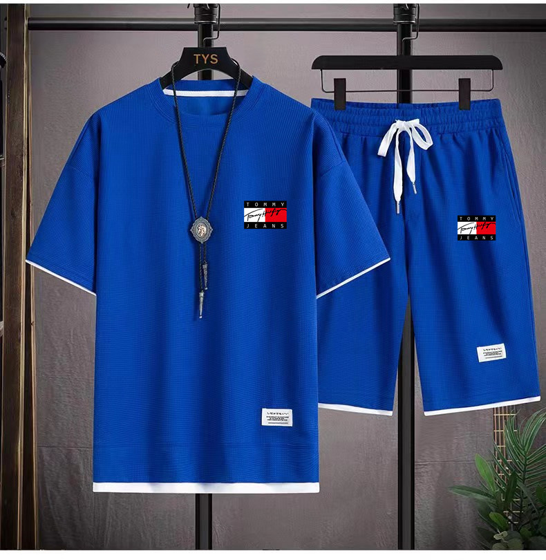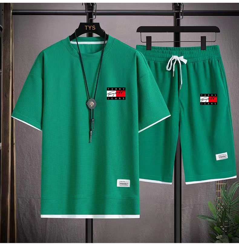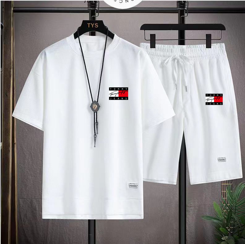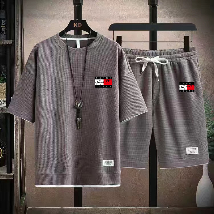 여름 새 와플 반팔 세트 남자 한국식 느슨한 청춘한 잘 생긴 반팔 반바지 캐주얼 투피스 트렌디스토어 가기