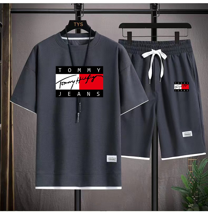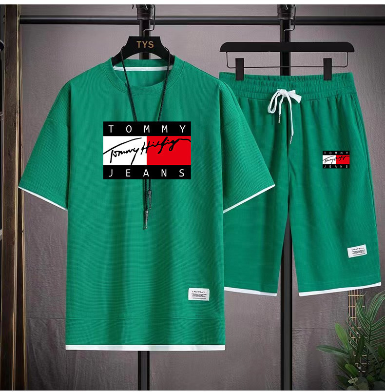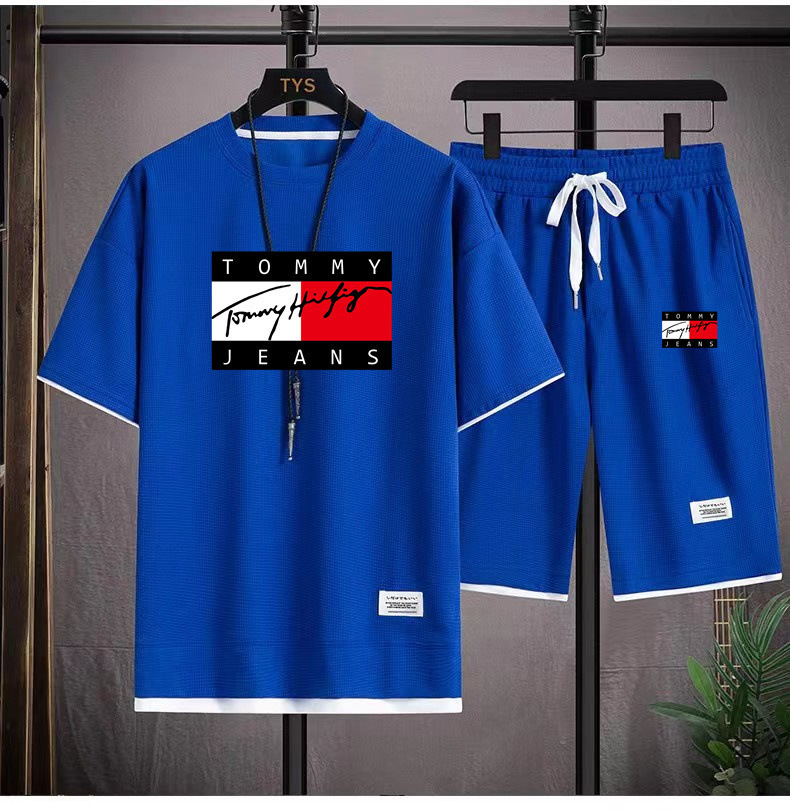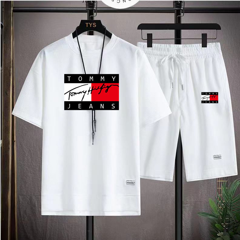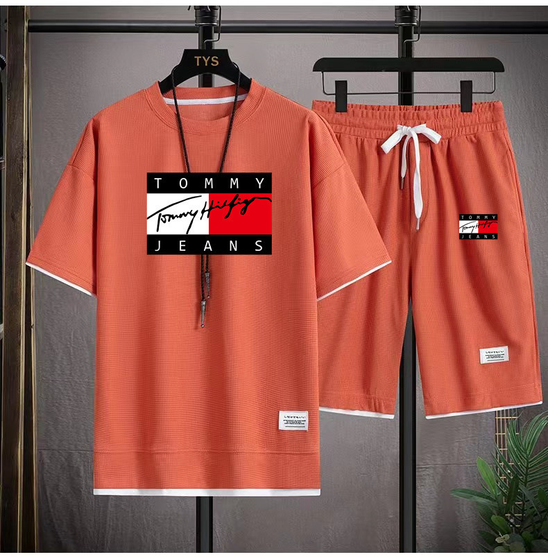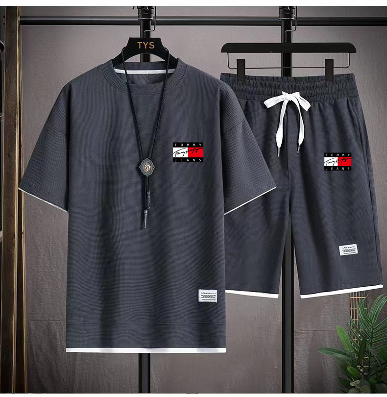 여름 새 와플 반팔 세트 남자 한국식 느슨한 청춘한 잘 생긴 반팔 반바지 캐주얼 투피스 트렌디스토어 가기