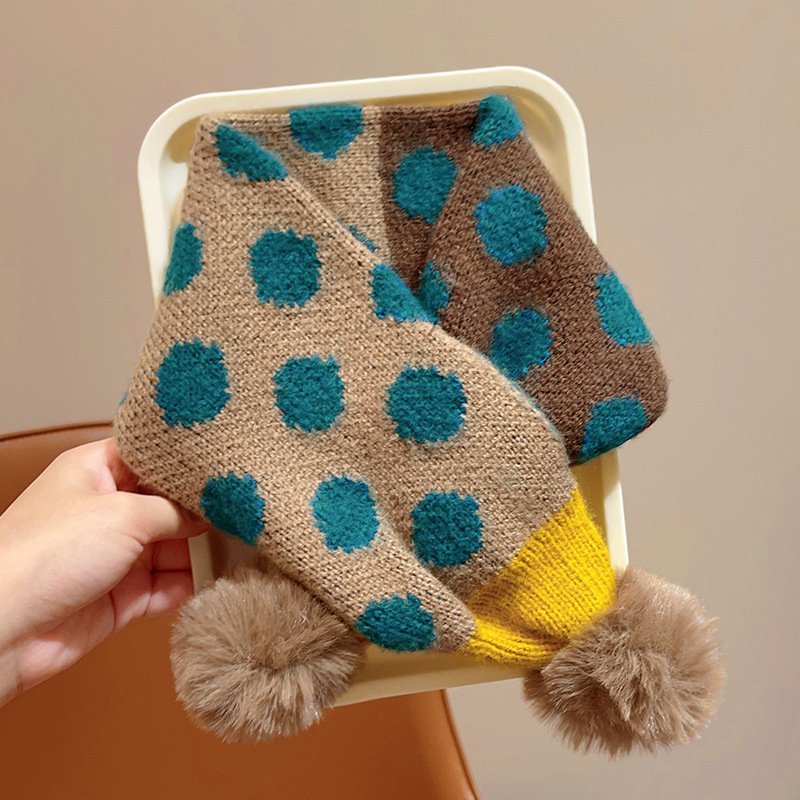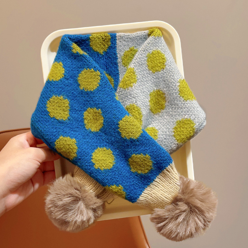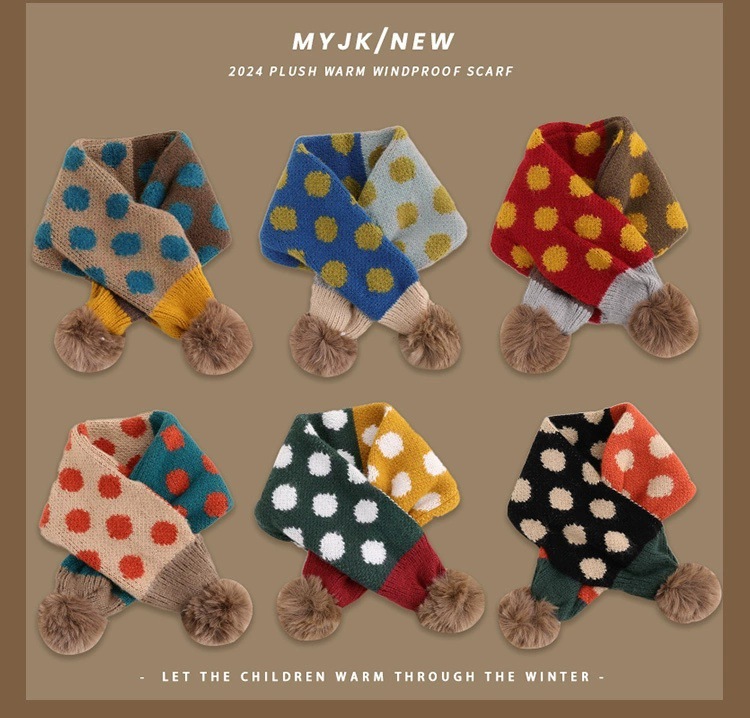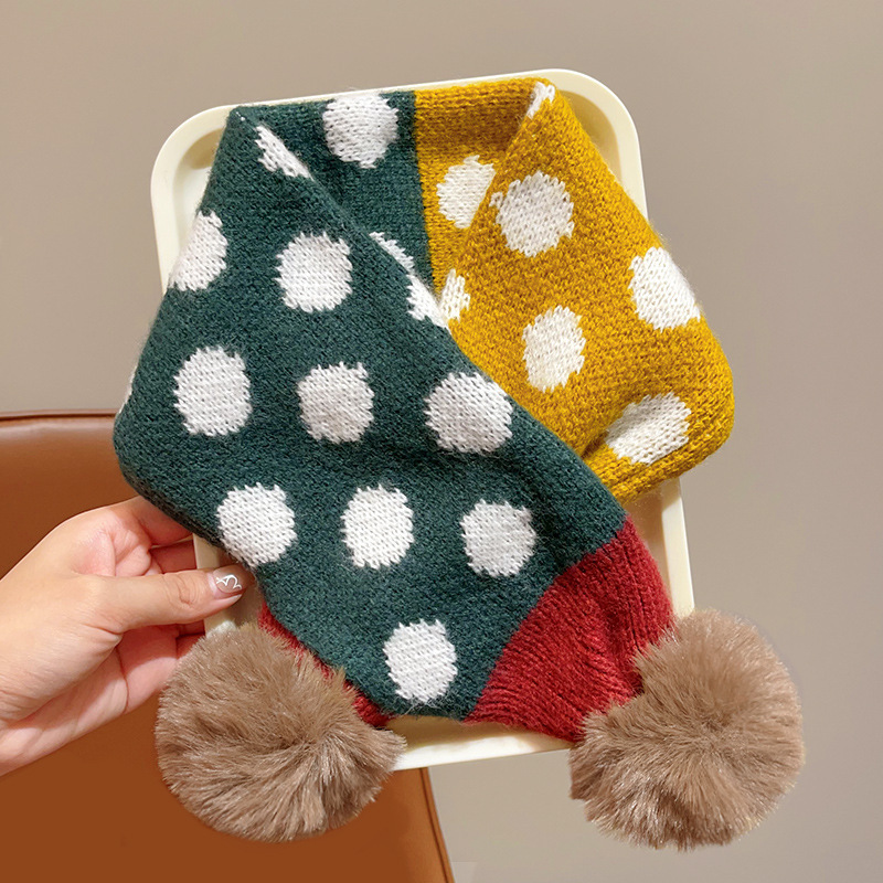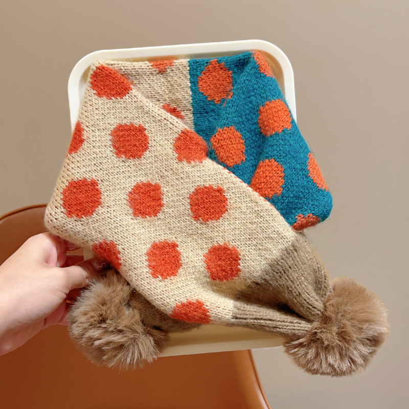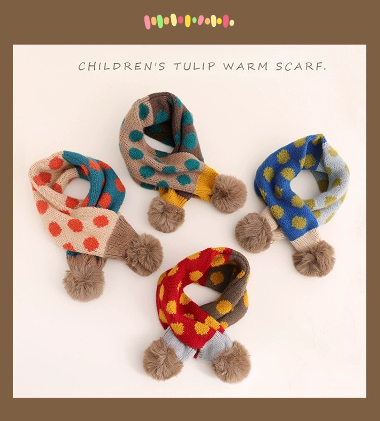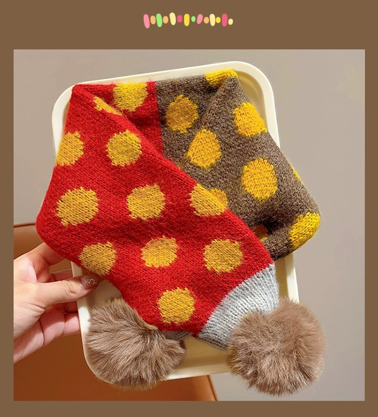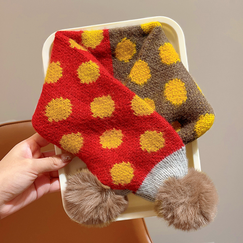 남학생과 여학생의 니트 스카프 방풍 따뜻한 웨이브 도트 바느질 목 세트 피부 친화적 인 부드러운 두꺼운 어린이의 가을과 겨울 스카프스토어 가기