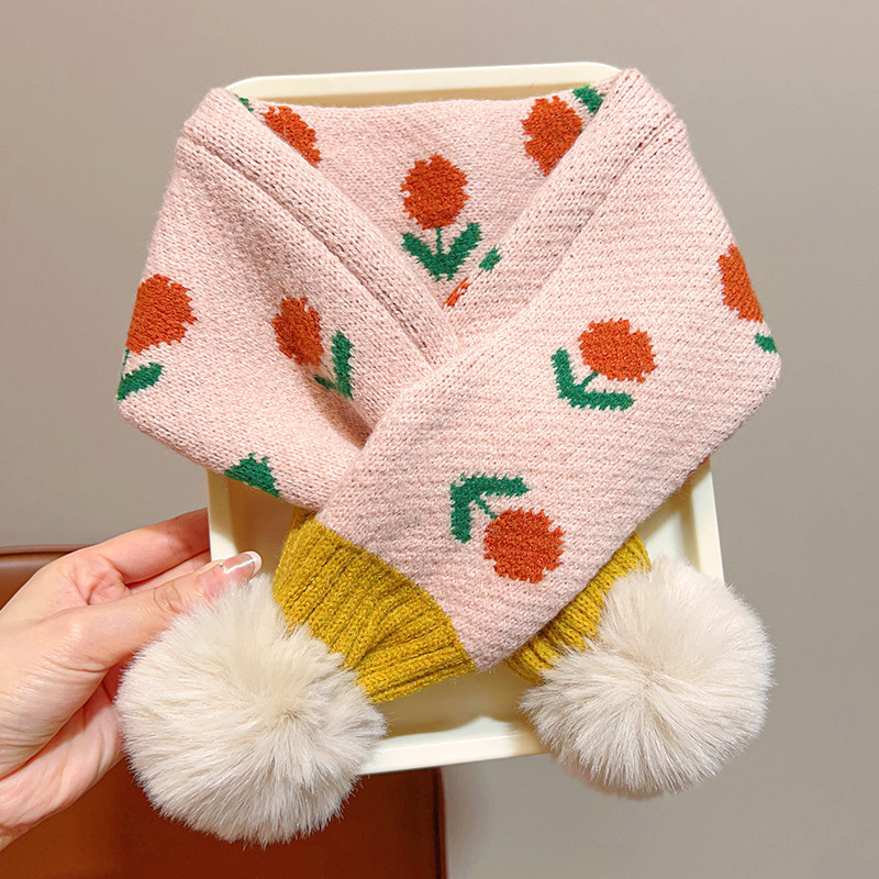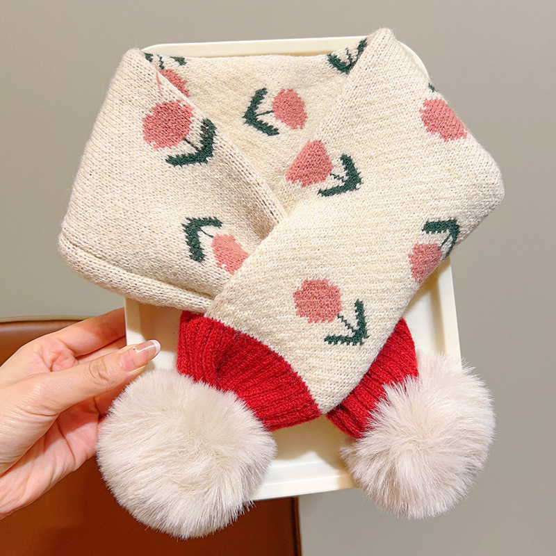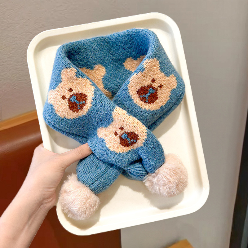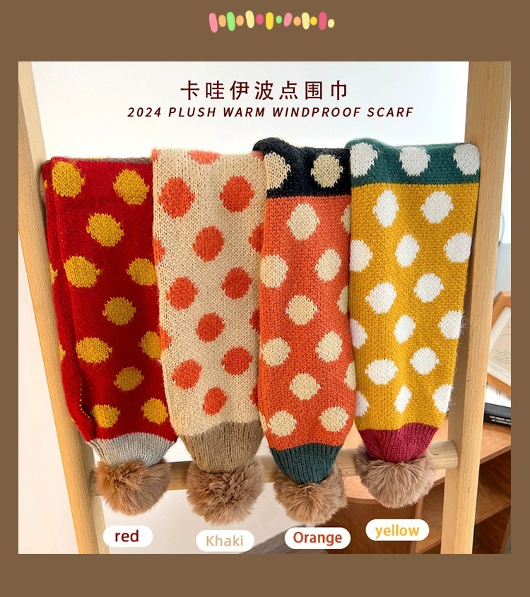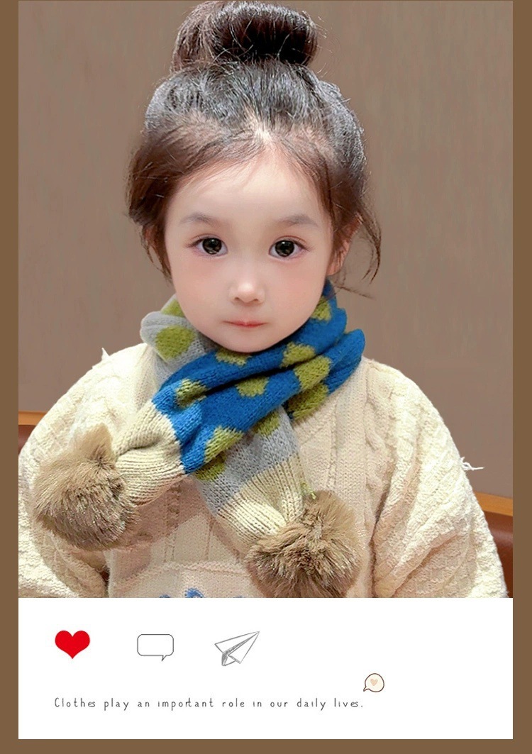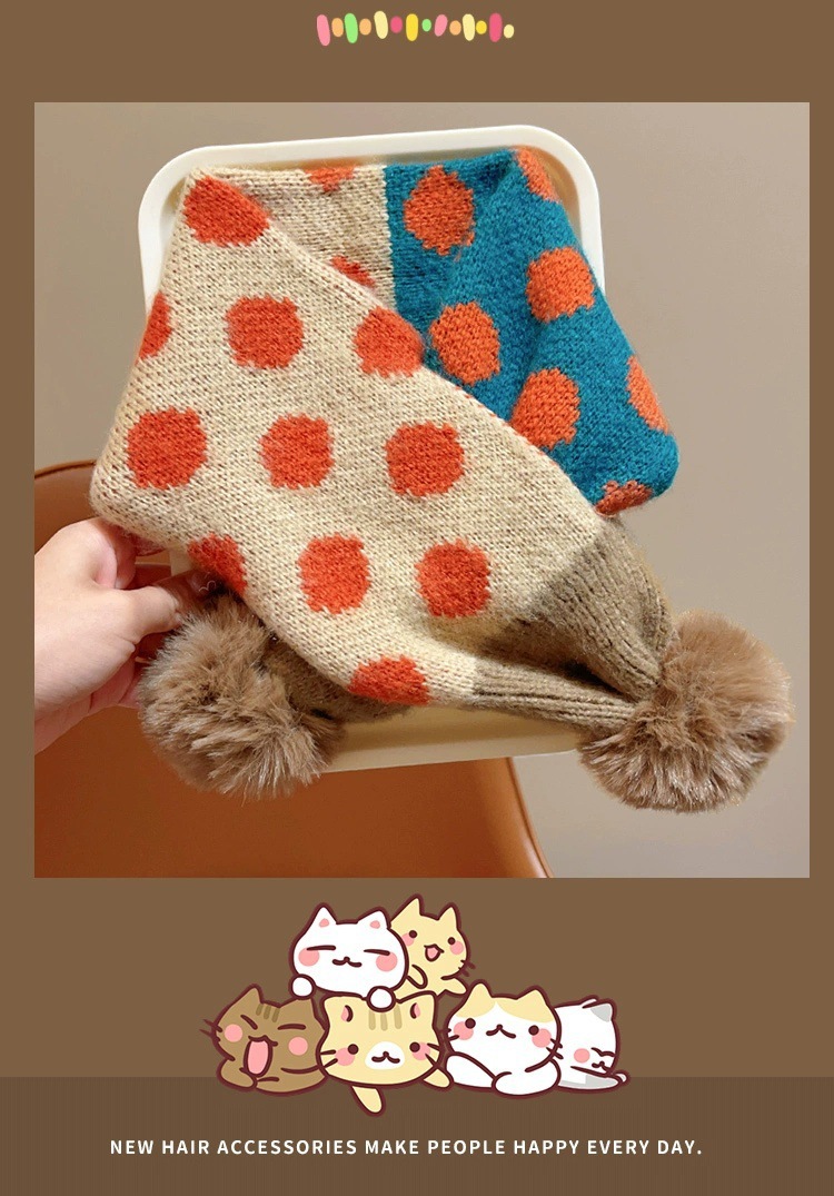 남학생과 여학생의 니트 스카프 방풍 따뜻한 웨이브 도트 바느질 목 세트 피부 친화적 인 부드러운 두꺼운 어린이의 가을과 겨울 스카프스토어 가기