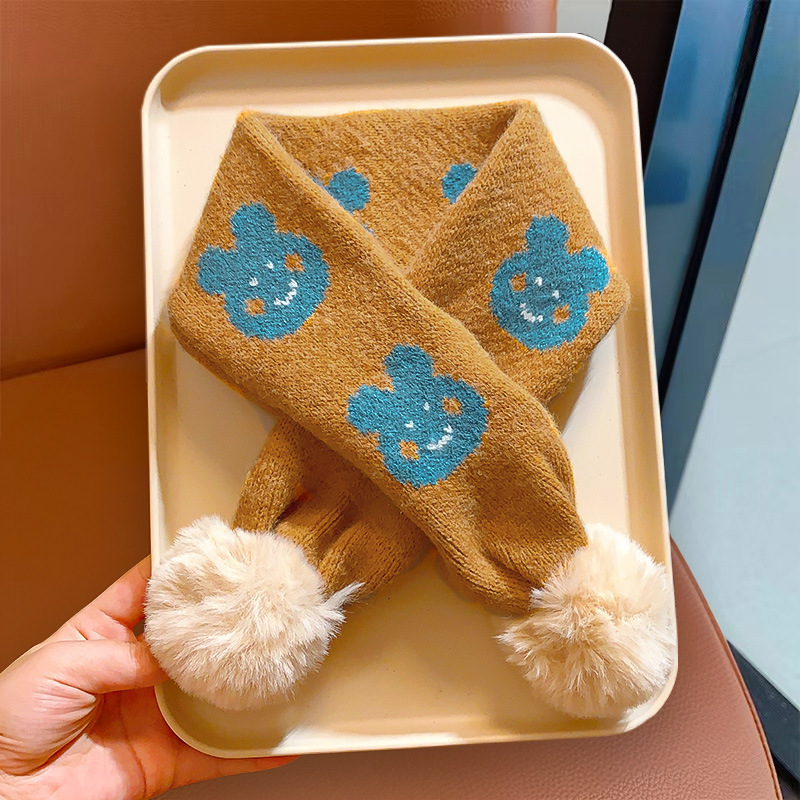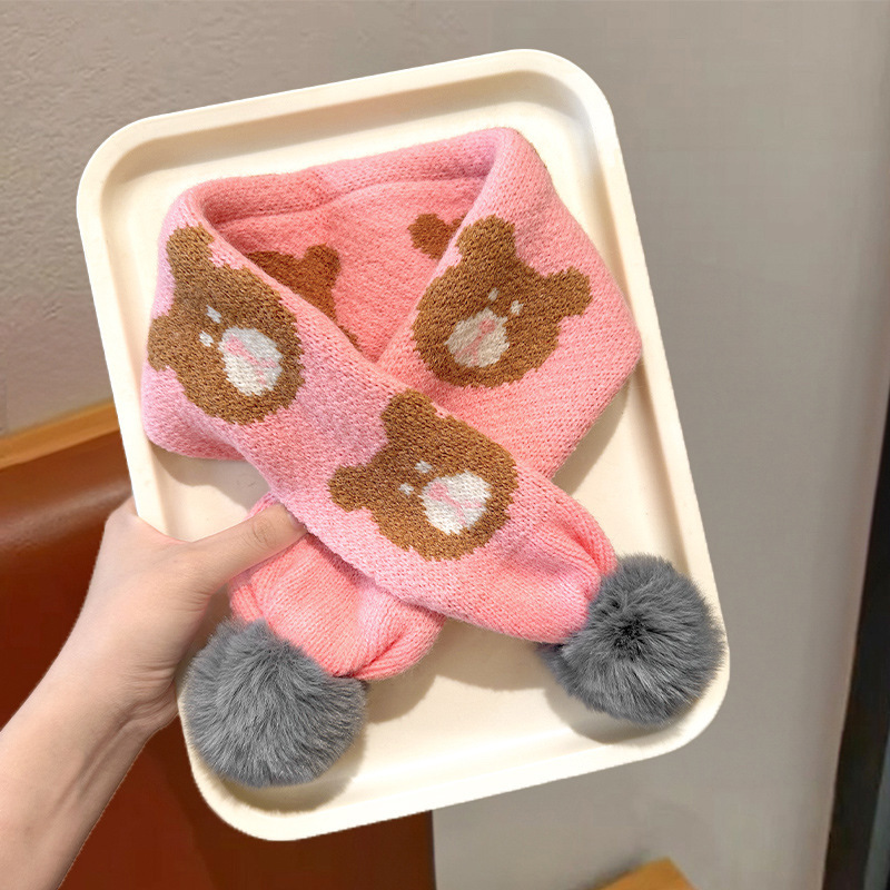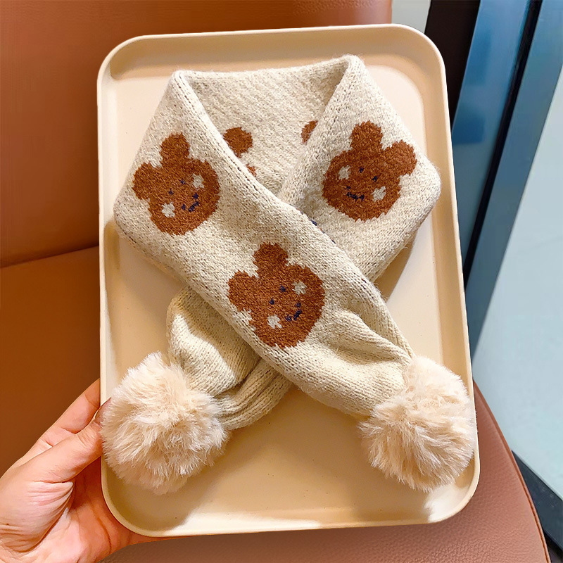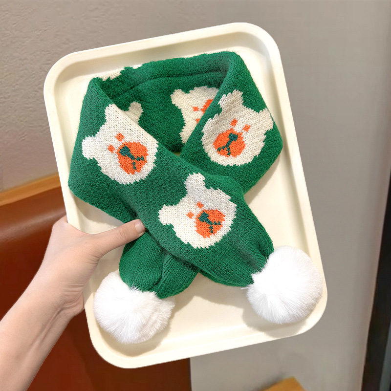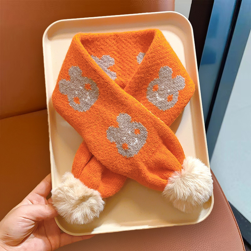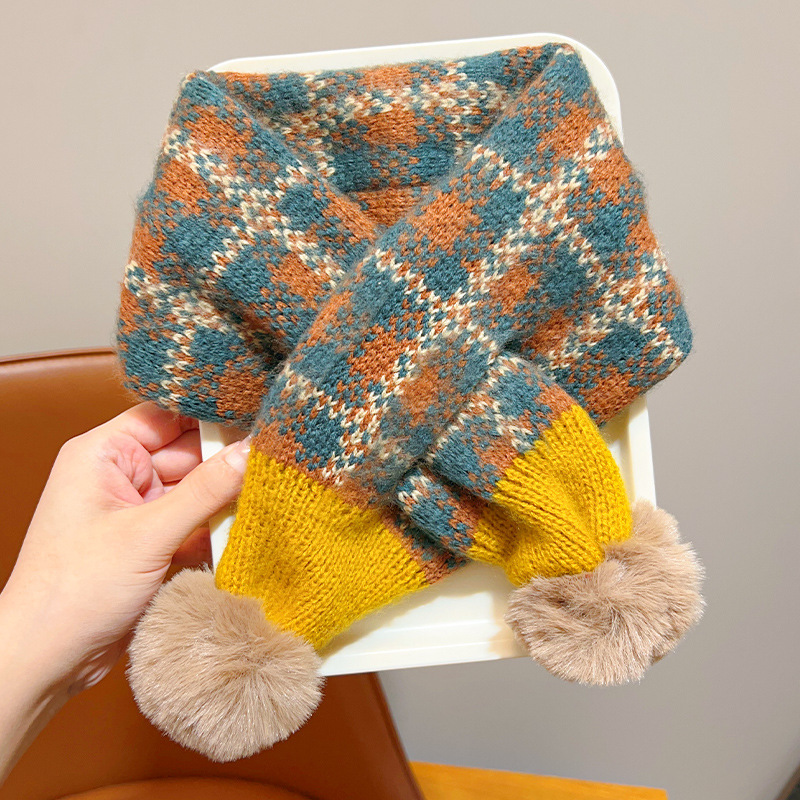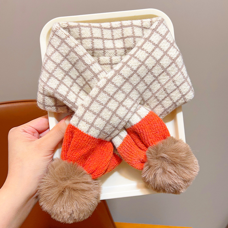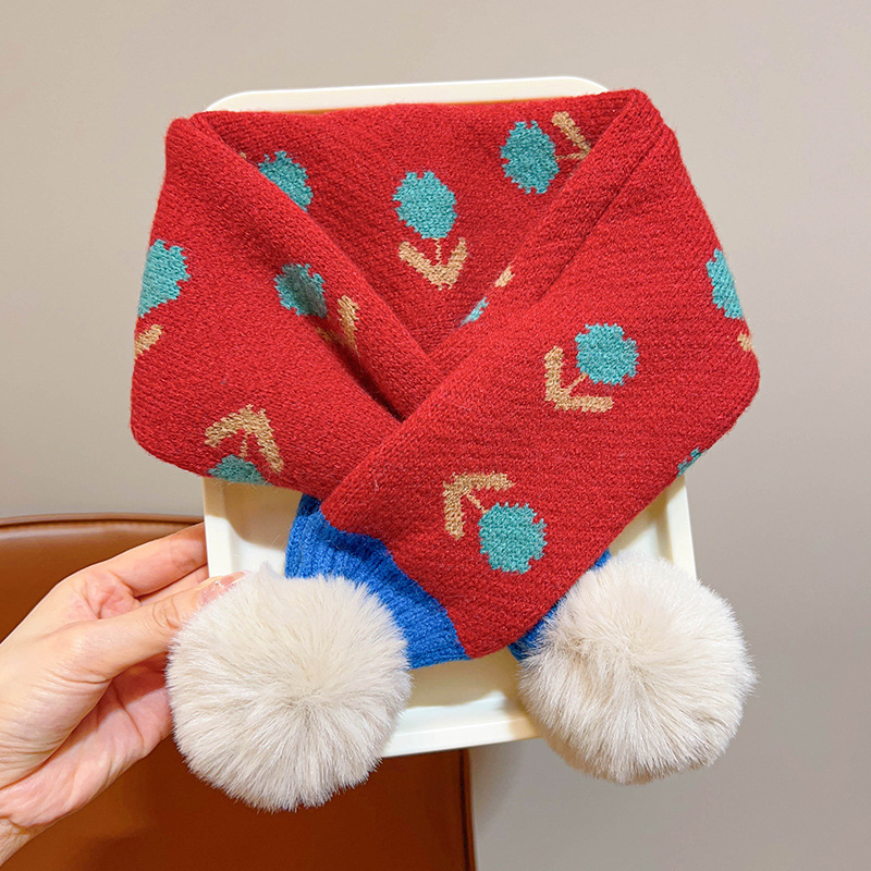 남학생과 여학생의 니트 스카프 방풍 따뜻한 웨이브 도트 바느질 목 세트 피부 친화적 인 부드러운 두꺼운 어린이의 가을과 겨울 스카프스토어 가기