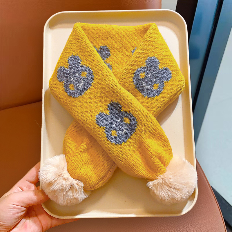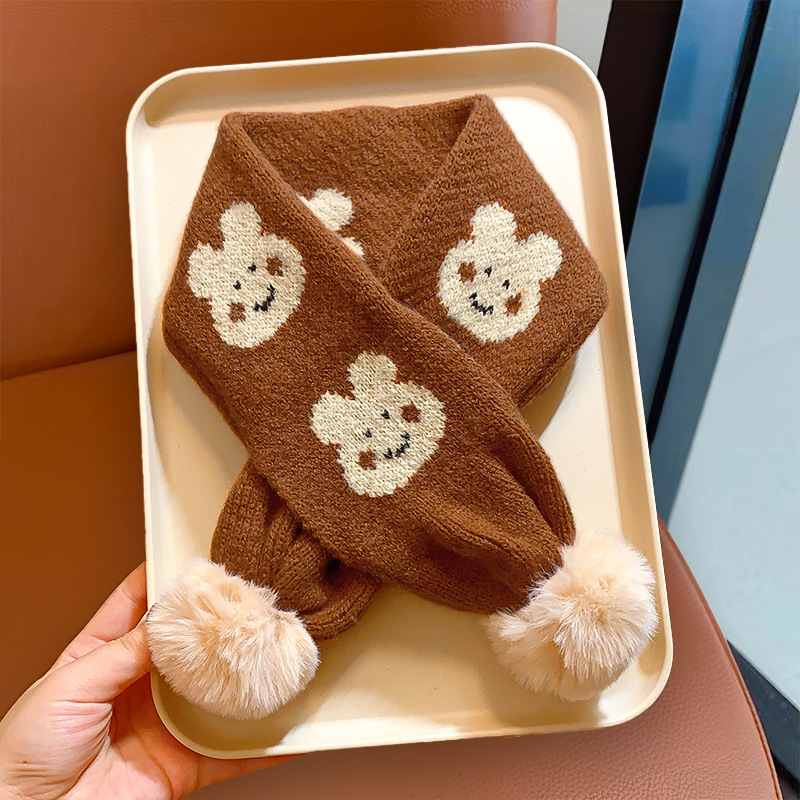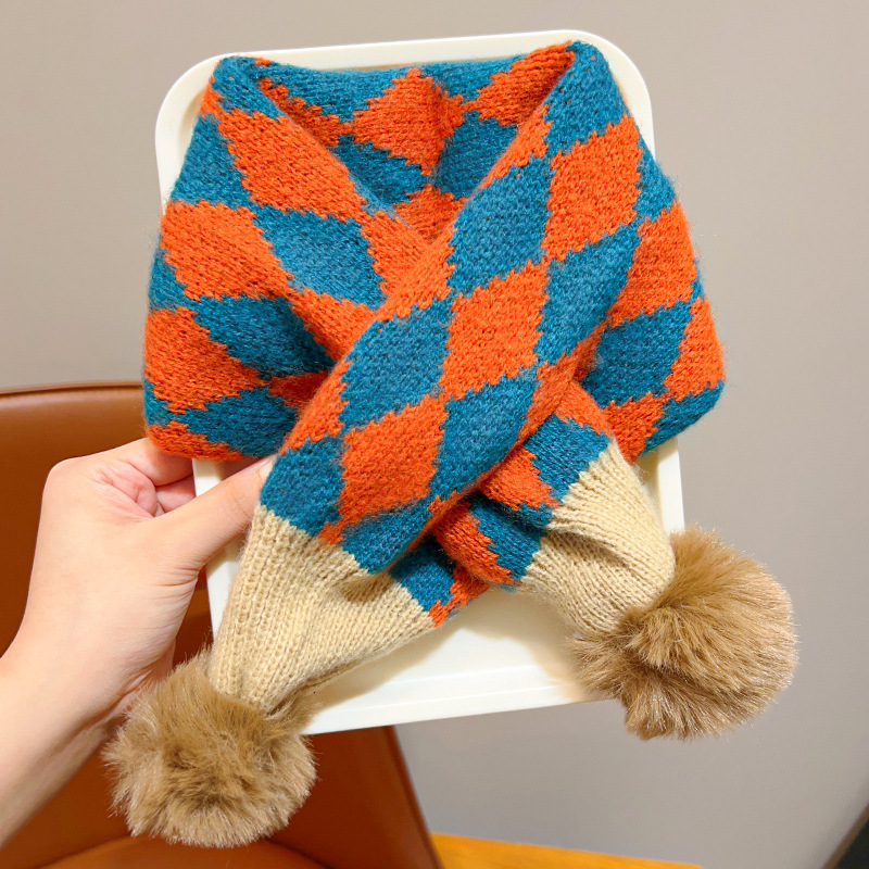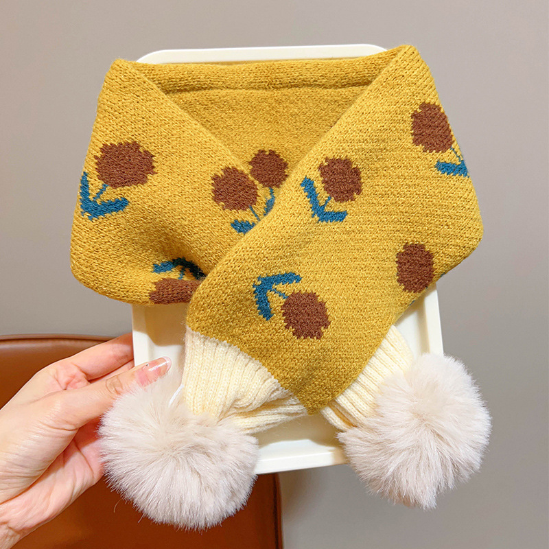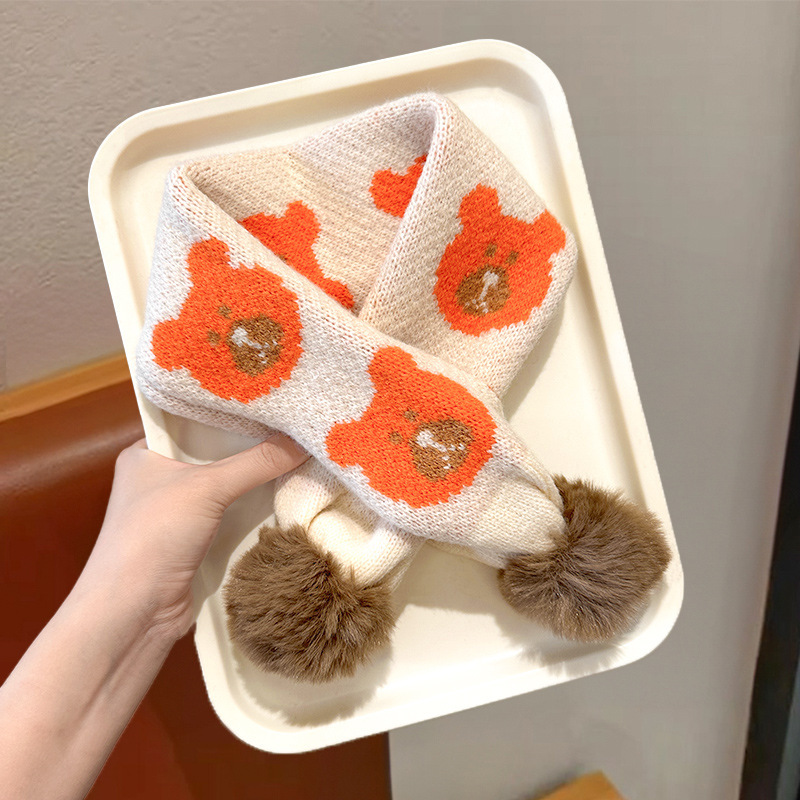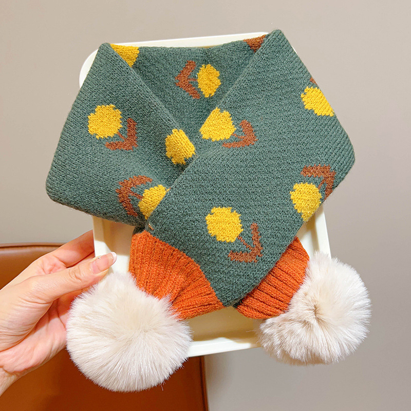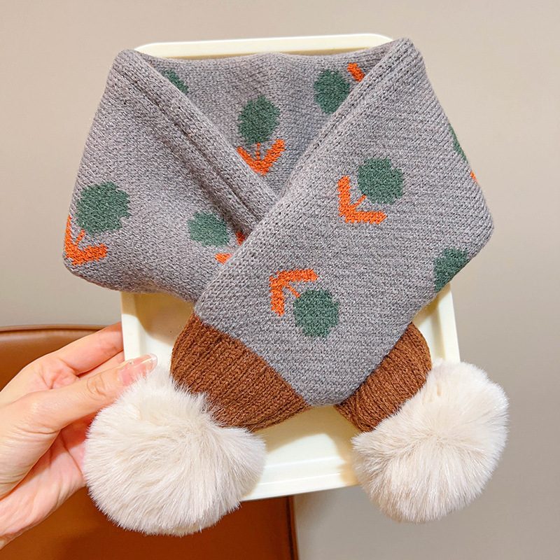 남학생과 여학생의 니트 스카프 방풍 따뜻한 웨이브 도트 바느질 목 세트 피부 친화적 인 부드러운 두꺼운 어린이의 가을과 겨울 스카프스토어 가기