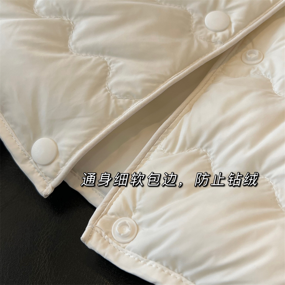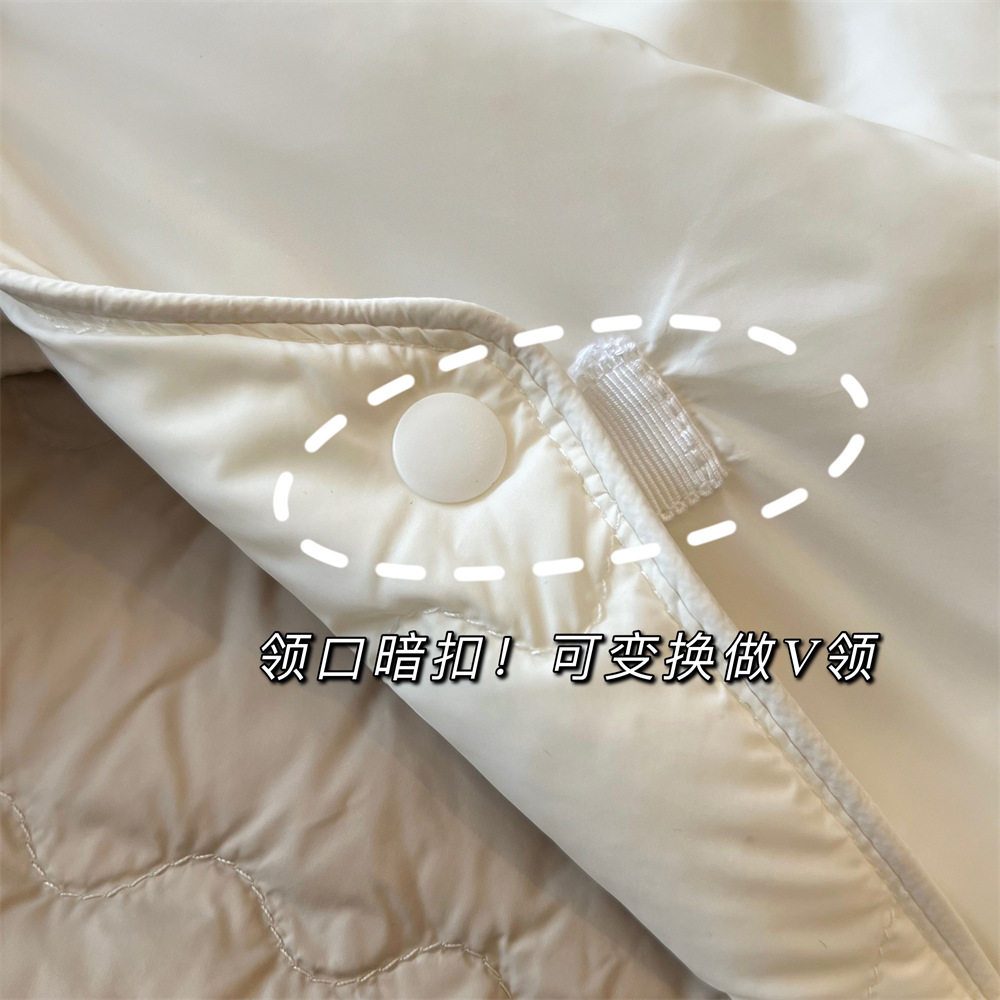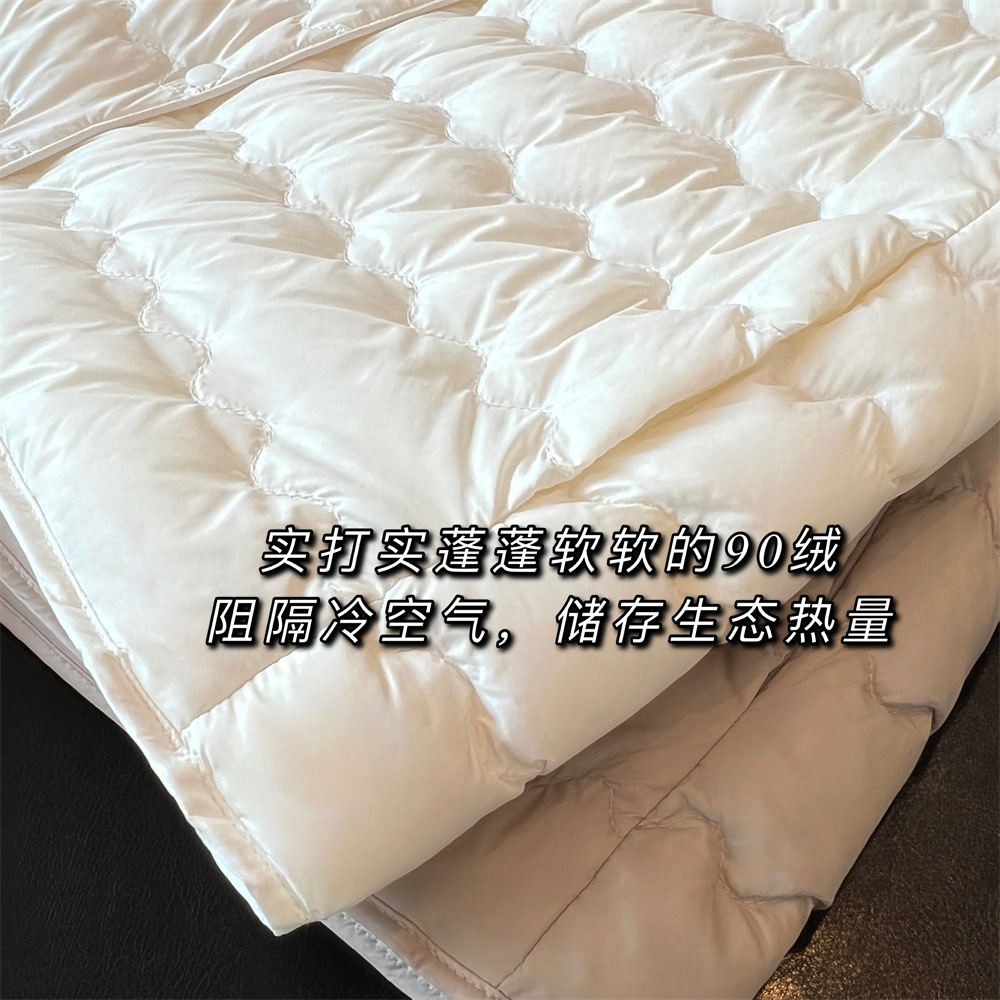 内里填充90白鸭绒,绒感细腻,均匀填充,轻而篙保暖