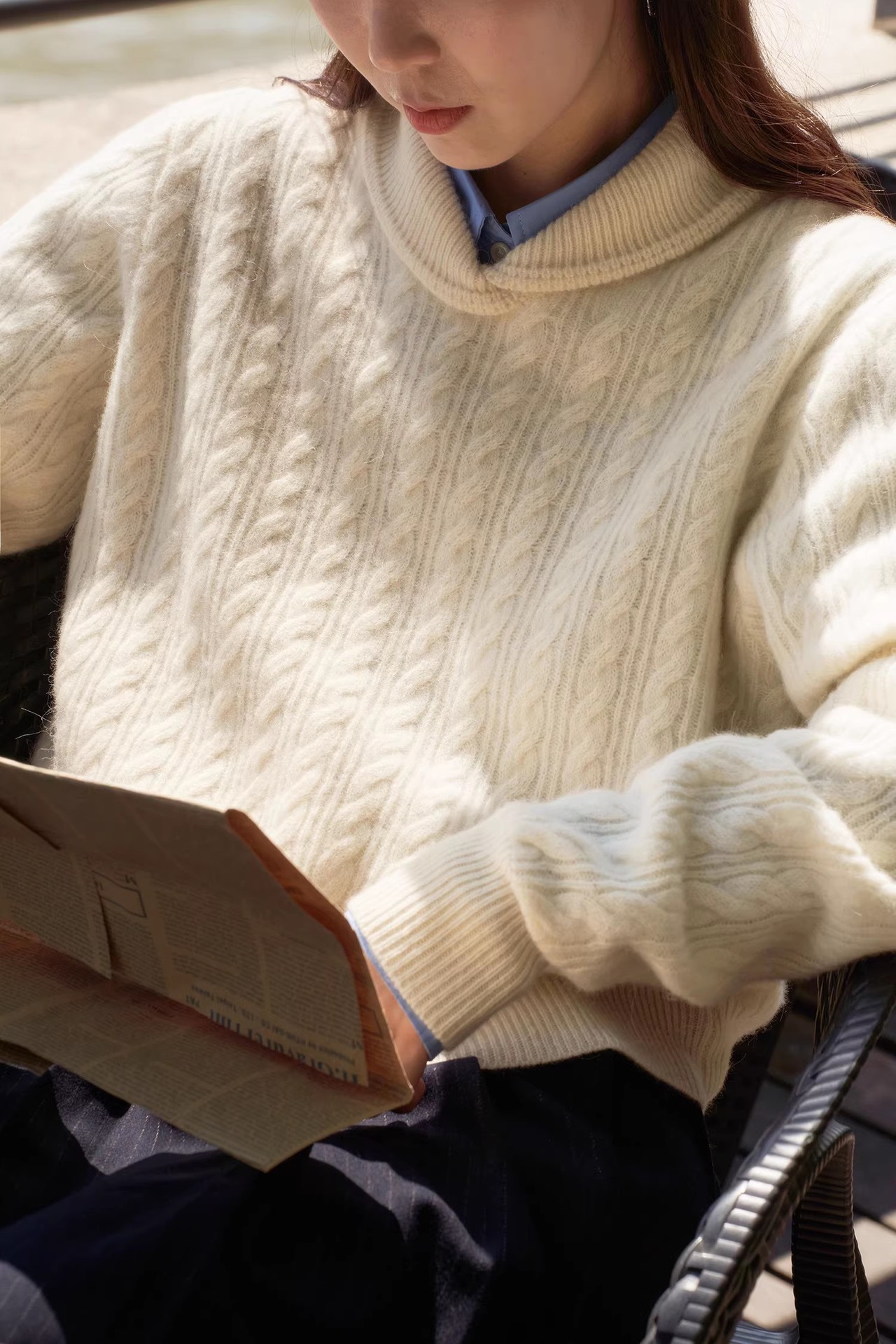 디자인 캐시미어 패턴 스웨터 여성의 작은 옷깃 가을과 겨울 느슨한 게으른 울 스웨터베이스 두꺼운 긴 소매 탑 트렌디스토어 가기