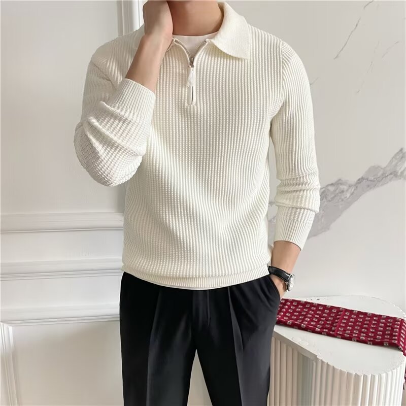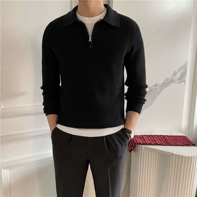 영국 남자 긴팔 하프 Zip 폴로 넥 스웨터 풀오버 와플 패브릭 슬림 핏 솔리드 컬러 스웨터 스웨터 스웨터 스웨터 스웨터