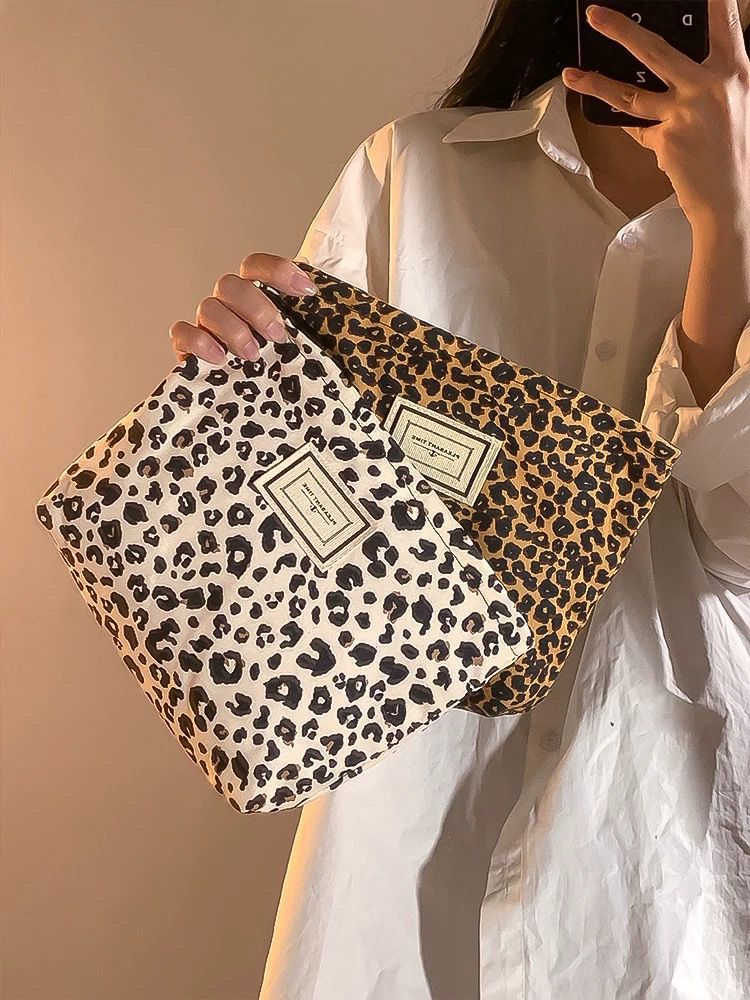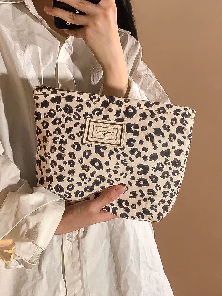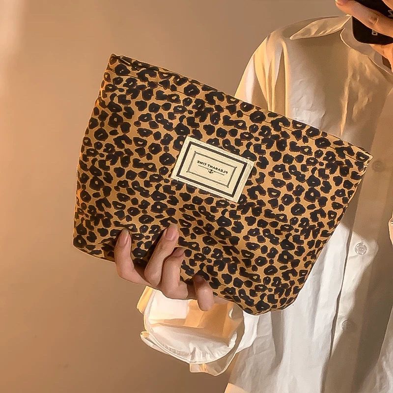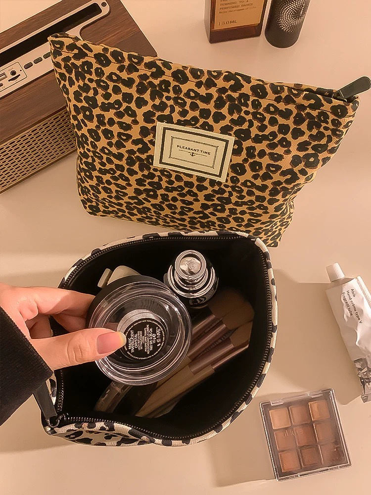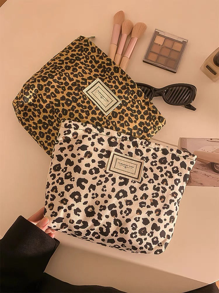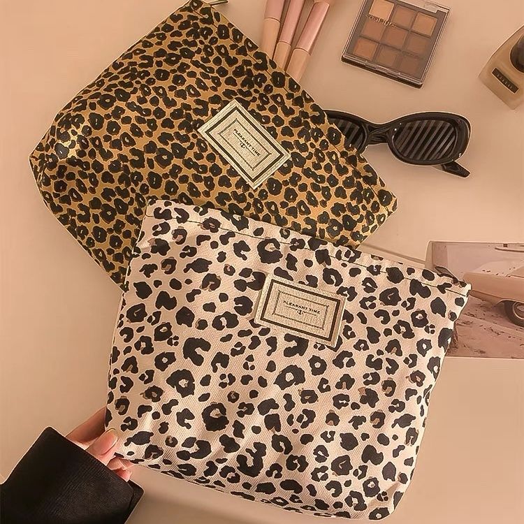 레오파드 캔버스 화장품 가방 여성용 휴대용 대용량 여행 캐리 온 스킨 케어 립스틱 보관 가방 세탁 가방스토어 가기