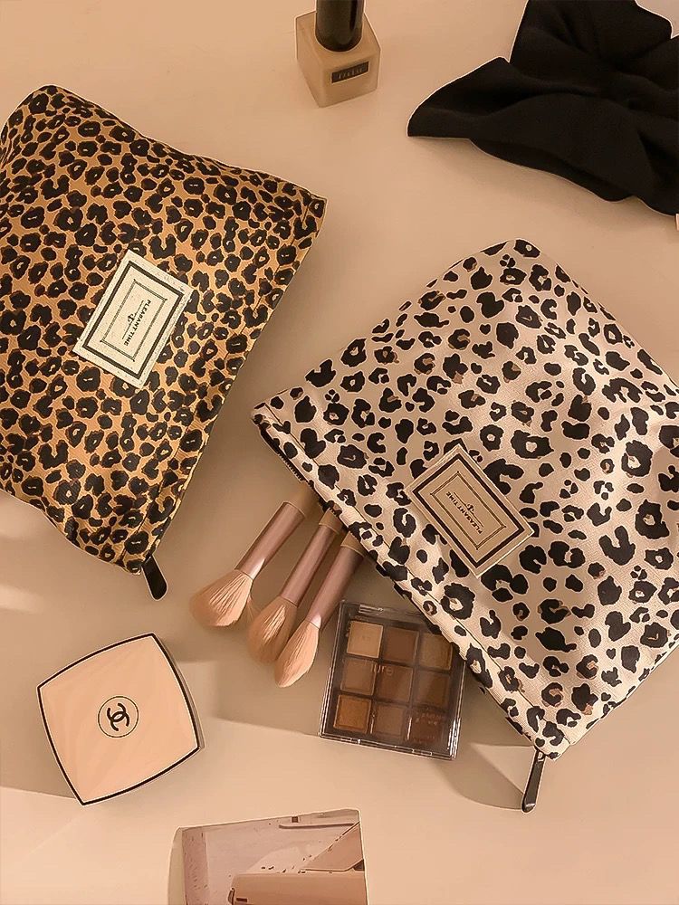 레오파드 캔버스 화장품 가방 여성용 휴대용 대용량 여행 캐리 온 스킨 케어 립스틱 보관 가방 세탁 가방