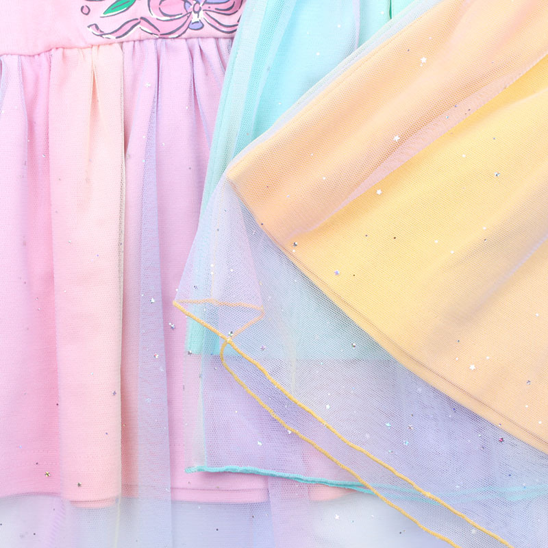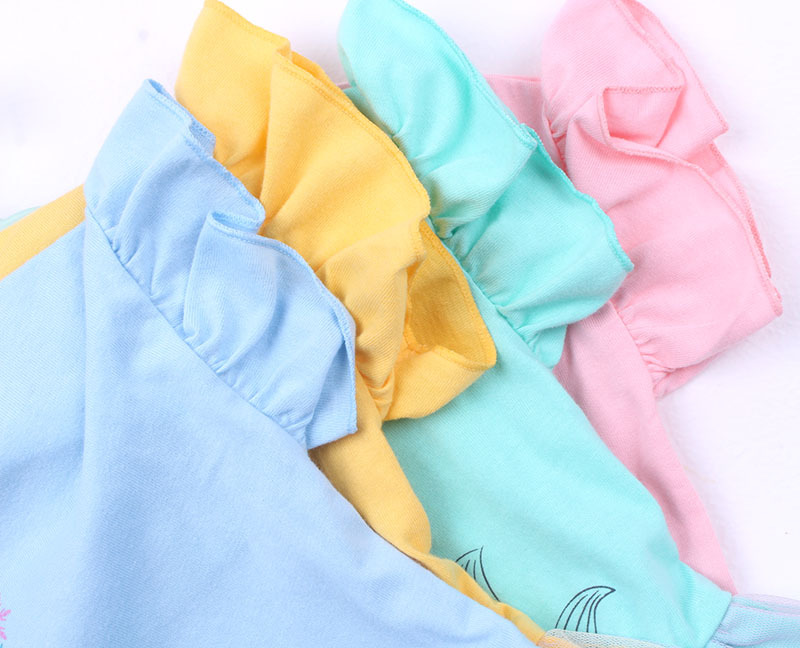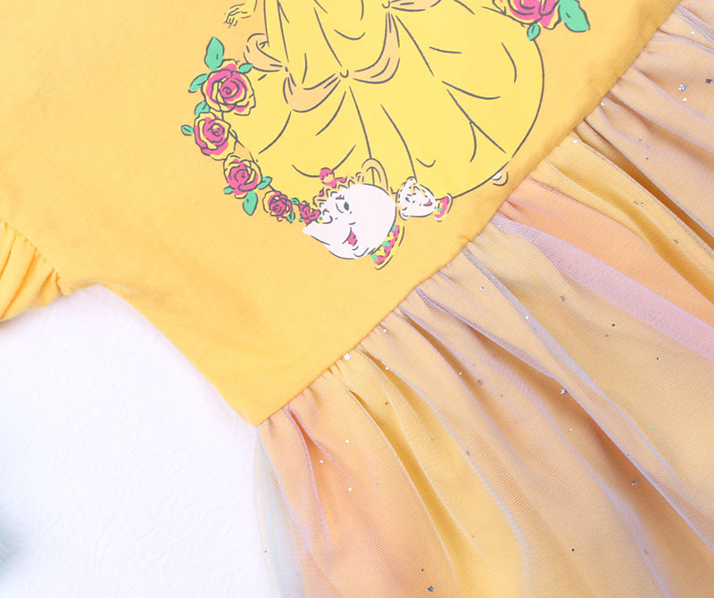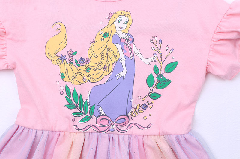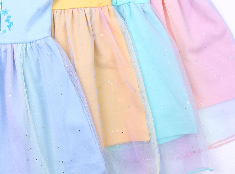 일본의 새로운 어린이 원피스 색상 변경 메쉬 원피스 소녀의 여름 순면 원피스 아기 소녀의 만화 반소매 공주 원피스