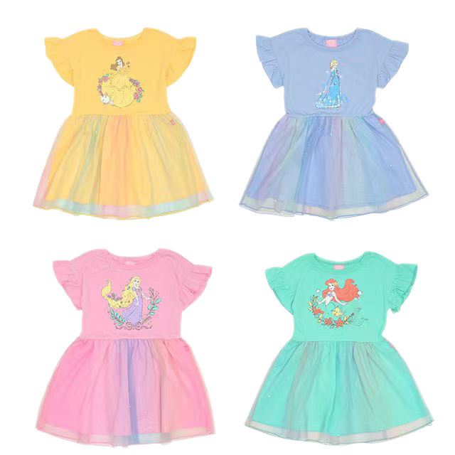 일본의 새로운 어린이 원피스 색상 변경 메쉬 원피스 소녀의 여름 순면 원피스 아기 소녀의 만화 반소매 공주 원피스스토어 가기