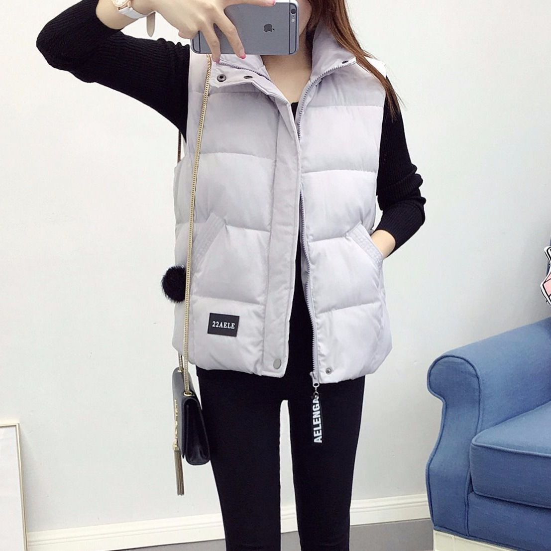 다운 코튼 조끼 여성의 가을과 겨울 2024 새로운 민소매 빵면 패딩 재킷 조끼 이른 가을 조끼 면화 양복 조끼스토어 가기