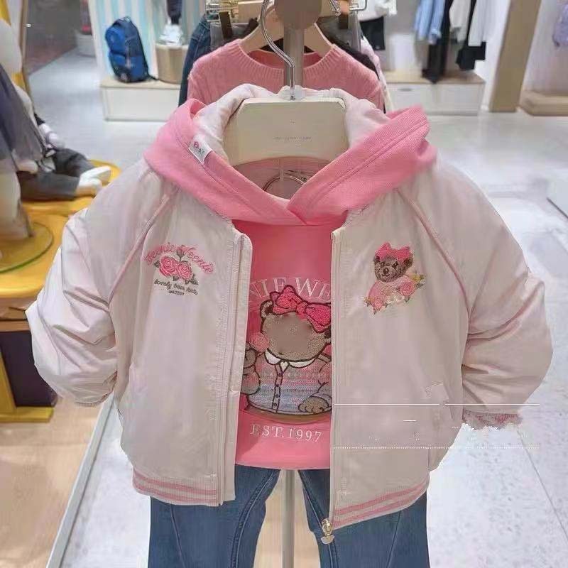 24 겨울 새 곰 껴안고 달콤하고 사랑스러운 바람이 두꺼운 소녀 핑크 무거운 자수 면봉 재킷 코트스토어 가기