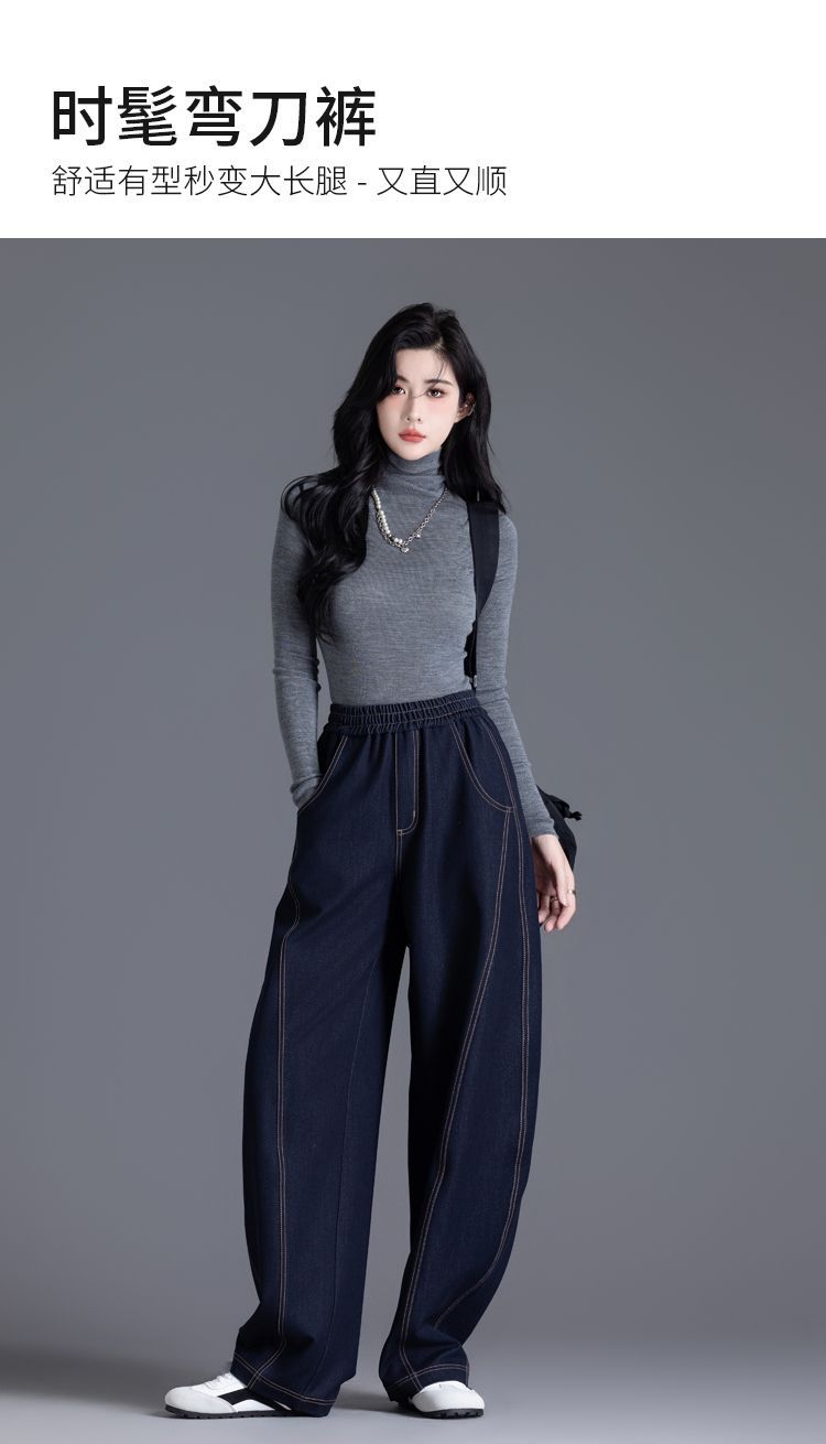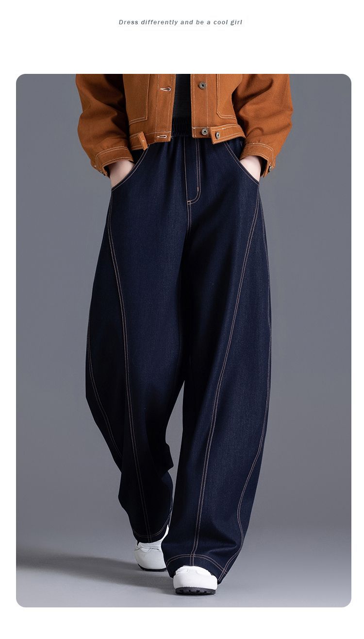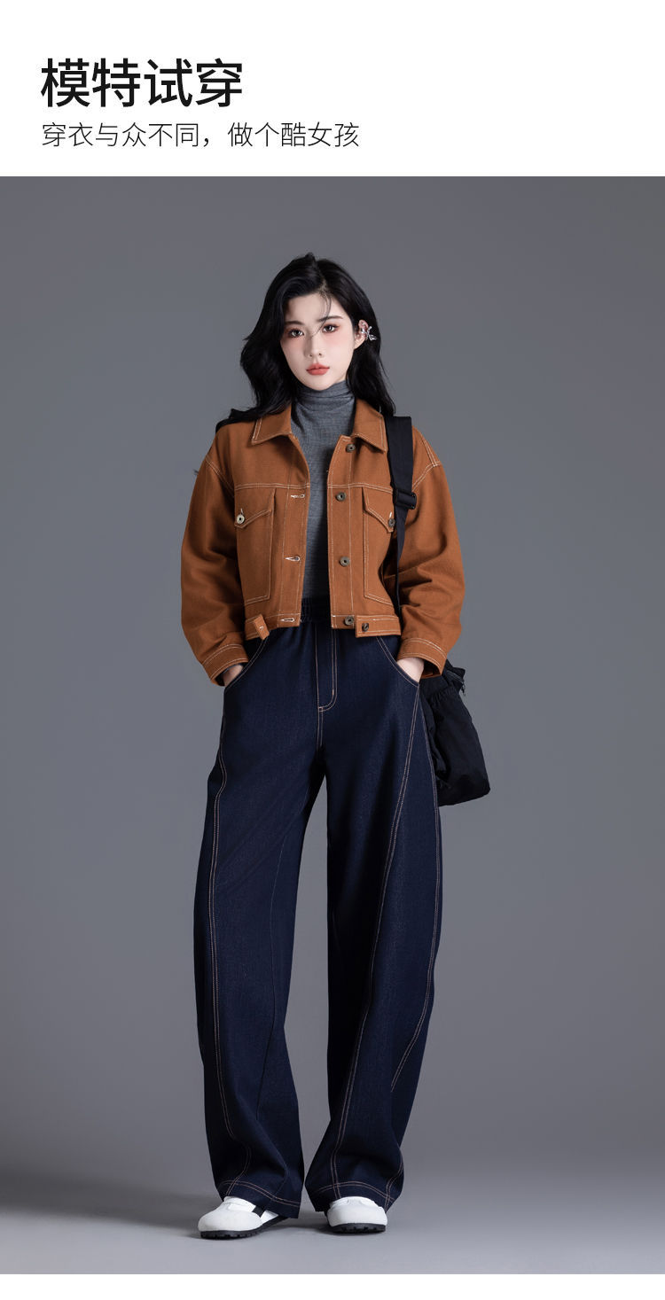 데님 청바지 여성용 2024 신상 가을 바나나 스타일 루즈핏 슬림 와이드 웨이스트 스트레이트 팬츠 반팔 배송스토어 가기