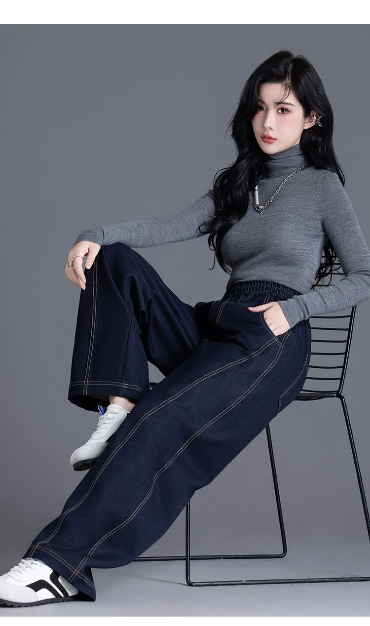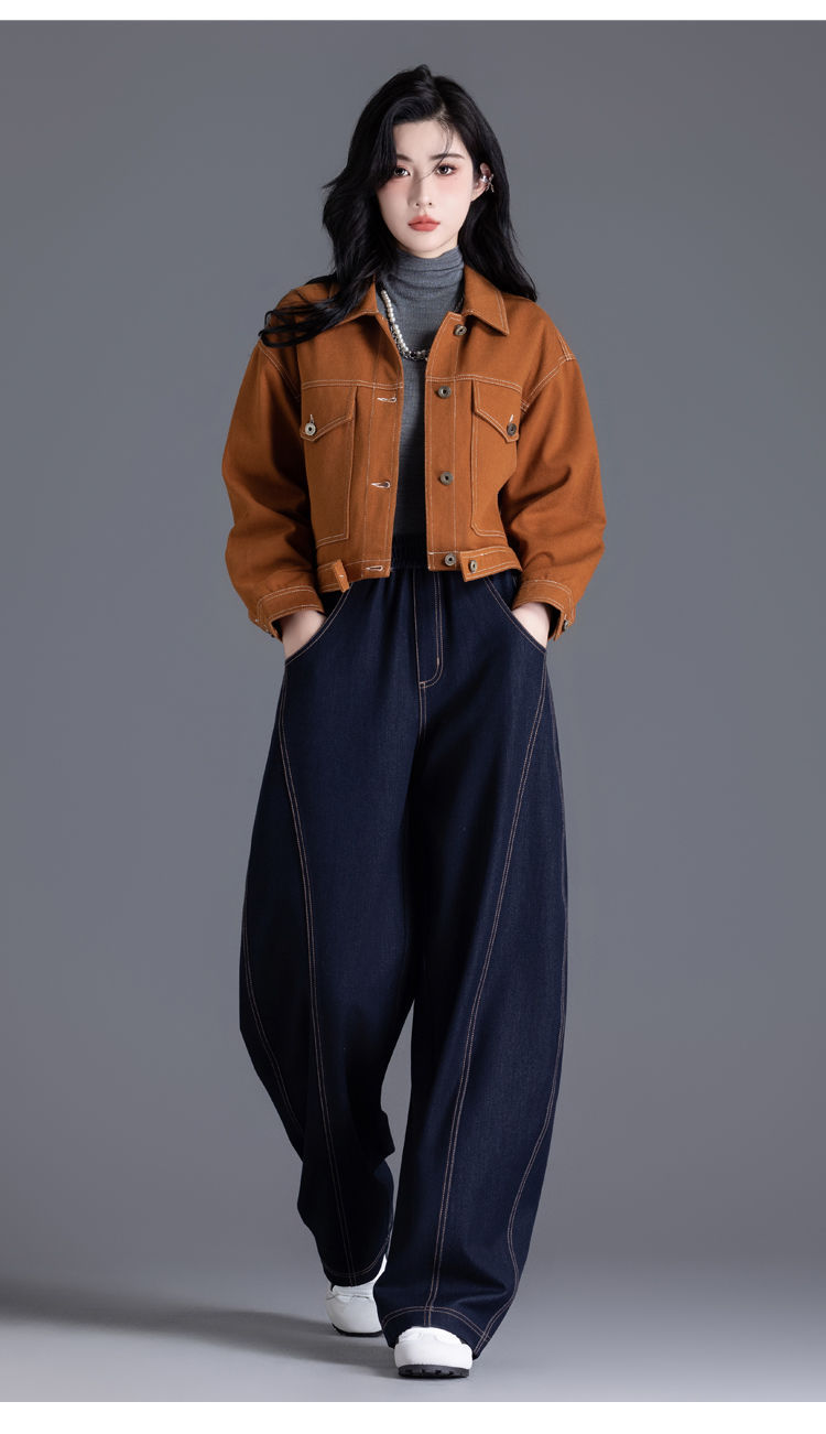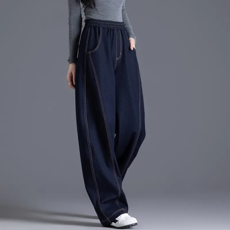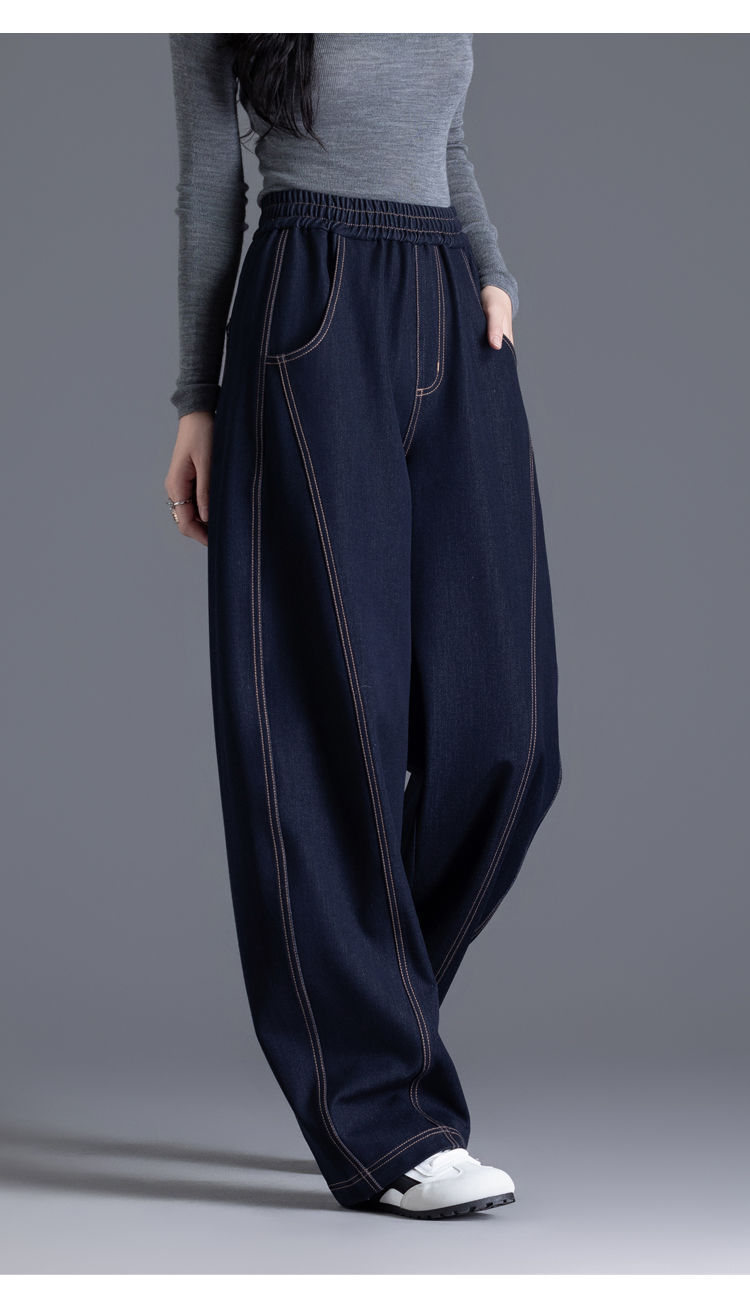 데님 청바지 여성용 2024 신상 가을 바나나 스타일 루즈핏 슬림 와이드 웨이스트 스트레이트 팬츠 반팔 배송스토어 가기