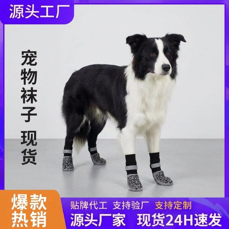 대형견용 미끄럼 방지 바닥 강아지 양말, 긁힘 방지 무소음 애완동물 양말, 블랙 레오파드 무늬 강아지 신발 도매스토어 가기