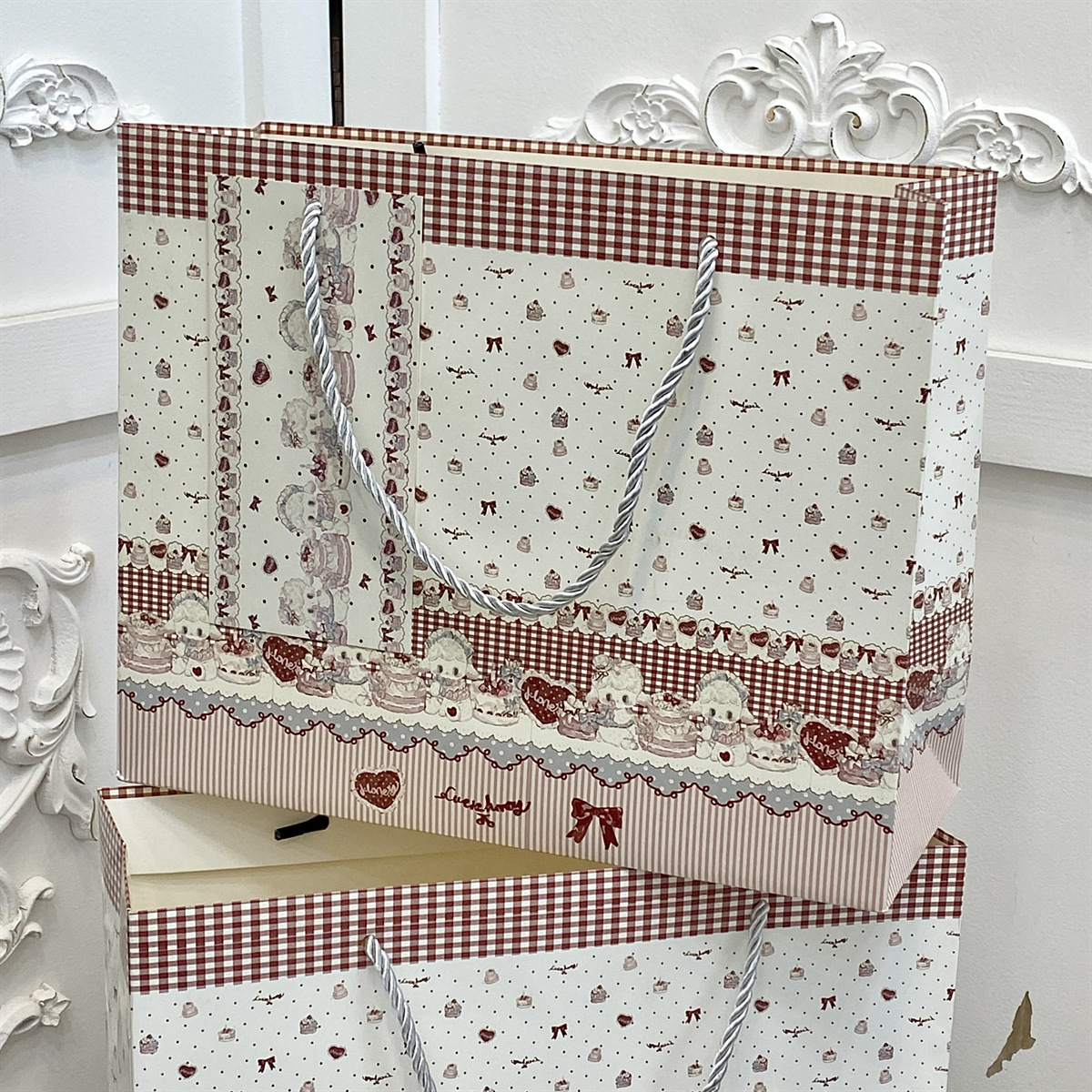 • 케이크 양고기 대형 선물 가방 [카드 포함], 흰색 판지, 30*12*24cm