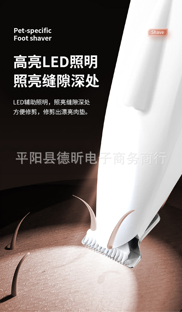 새로운 전기 고양이와 개 발 헤어 장치 헤어 컨디셔너 애완 동물 전기 클리퍼 충전식 LED 라이트 와이드 머리 발 면도 장치